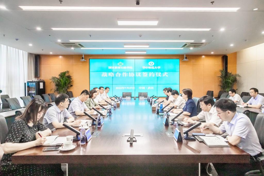 華大在線訊(記者 毛國樨)7月27日,國家教育行政學院與華中師范大學戰(zhàn)略合作協(xié)議簽約儀式在我校南湖綜合樓舉行。國家教育行政學院黨委書記、常務副院長侯慧君、副院長于京天,校黨委書記趙凌云、校長郝芳華、校黨委副書記陳迪明出席。郝芳華主持簽約儀式。