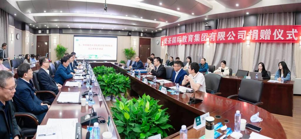 華大在線訊(通訊員 易吉林 羅少琦)10月13日,愛圣國際教育集團有限公司捐贈儀式暨校友座談會在校舉行。愛圣國際教育集團有限公司董事長關云平、愛圣國際教育集團有限公司總裁陳雅、副總裁吳躍,校黨委書記趙凌云、校長郝芳華、副校長彭南生以及相關單位負責人和師生代表參加捐贈儀式。儀式由副校長任友洲主持。