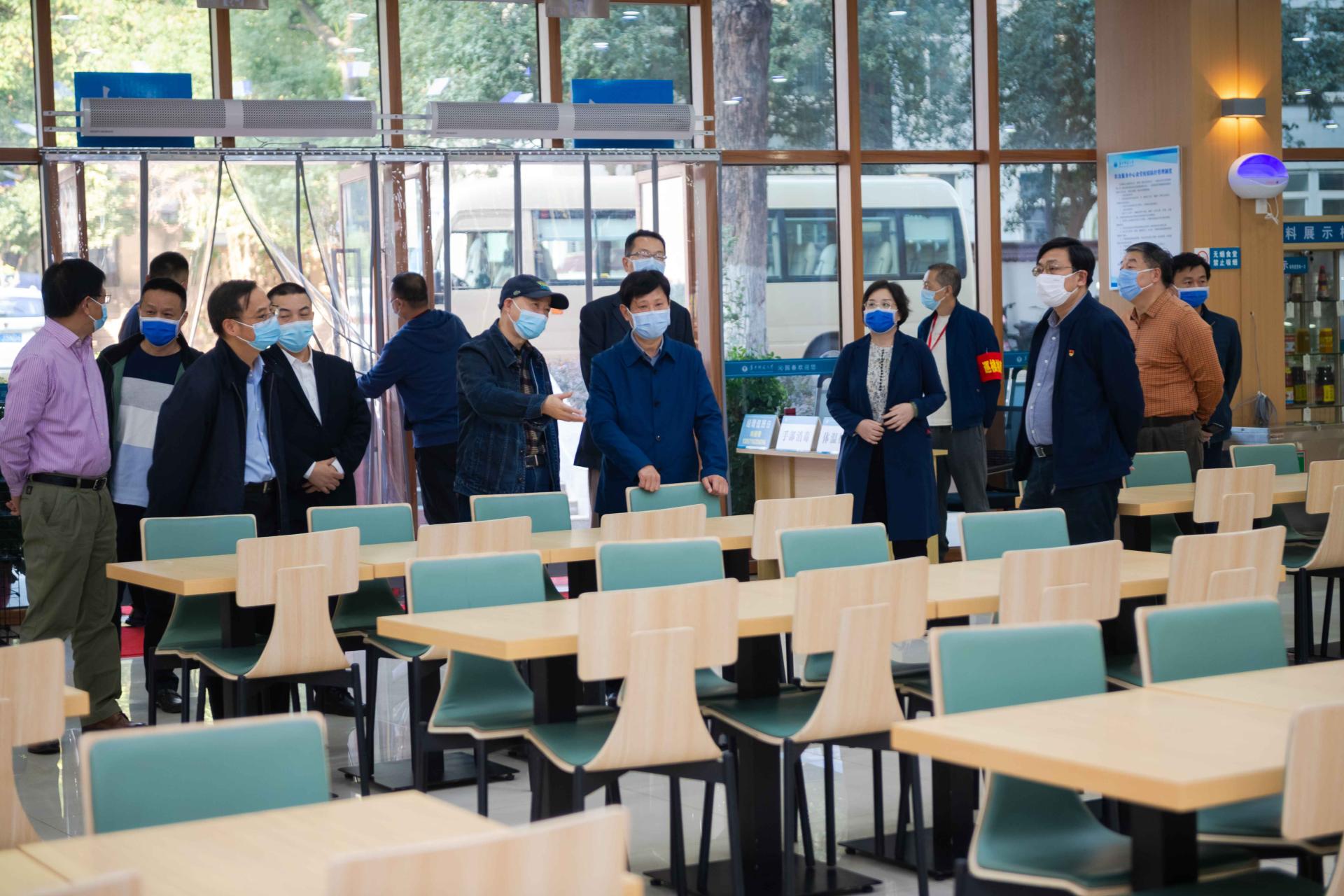 趙凌云一行先后深入沁園春食堂、大學(xué)生活動中心施工工地、學(xué)校東門入口、南湖食堂、西區(qū)家屬區(qū)核酸監(jiān)測點等地進行檢查。在沁園春食堂和南湖食堂,趙凌云仔細詢問了近期師生就餐情況,“希望你們能做到‘三個一點’。就餐間隔大一點,外帶打包方便一點,用餐時間延長一點?!壁w凌云要求各食堂加強用餐管理,提醒堂食師生注意用餐間隔,鼓勵打包外帶,適當延長供餐時間。