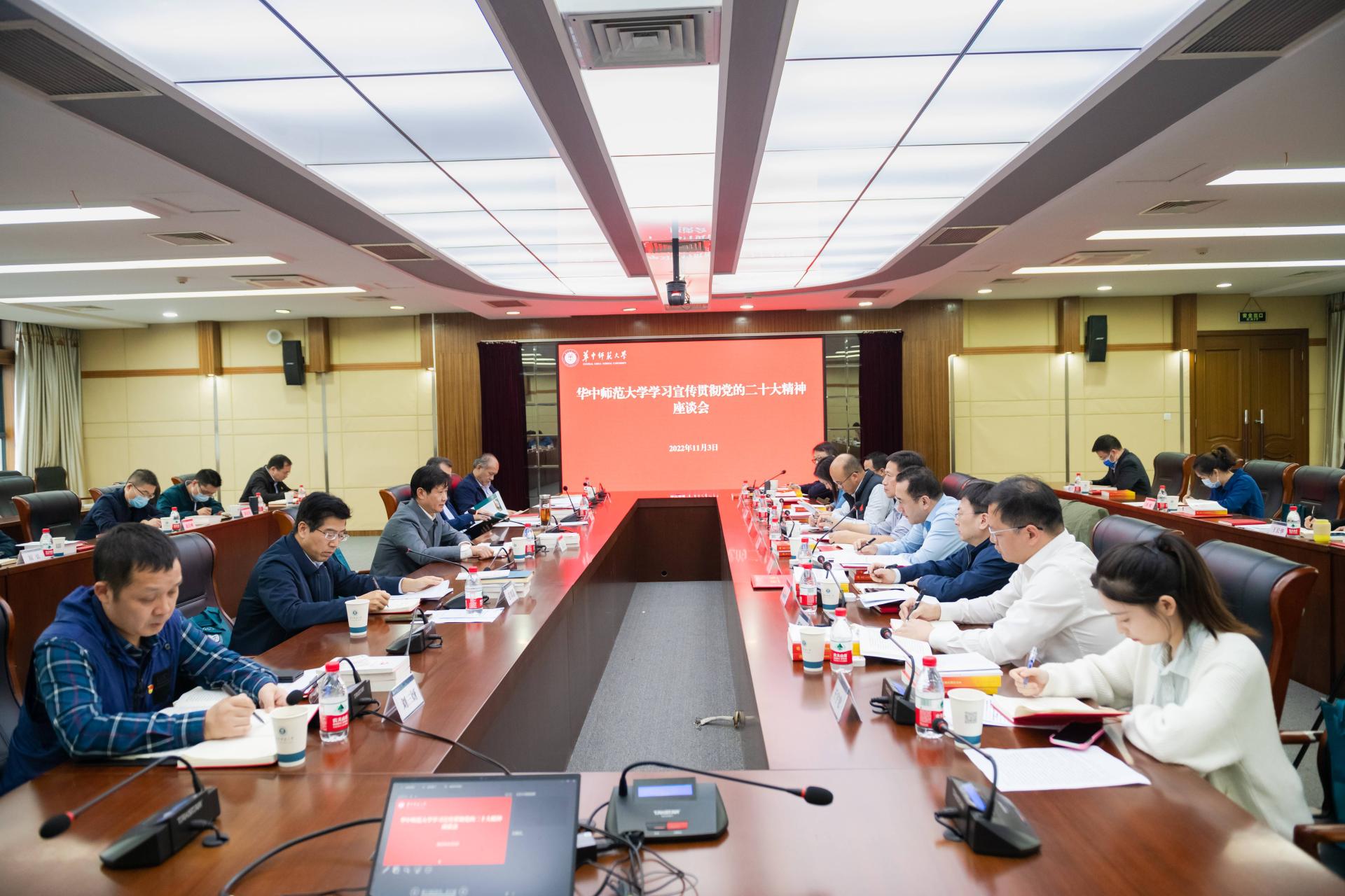 華大在線訊(記者 華軒)11月3日,華中師范大學“理響華師”理論宣講團成立暨學習宣傳貫徹黨的二十大精神座談會在逸夫國際會議中心二樓會議室舉行。校黨委書記趙凌云、副校長彭南生出席。來自不同學科專業的“理響華師”理論宣講團成員代表及學生代表參會。會議由副校長彭雙階主持。