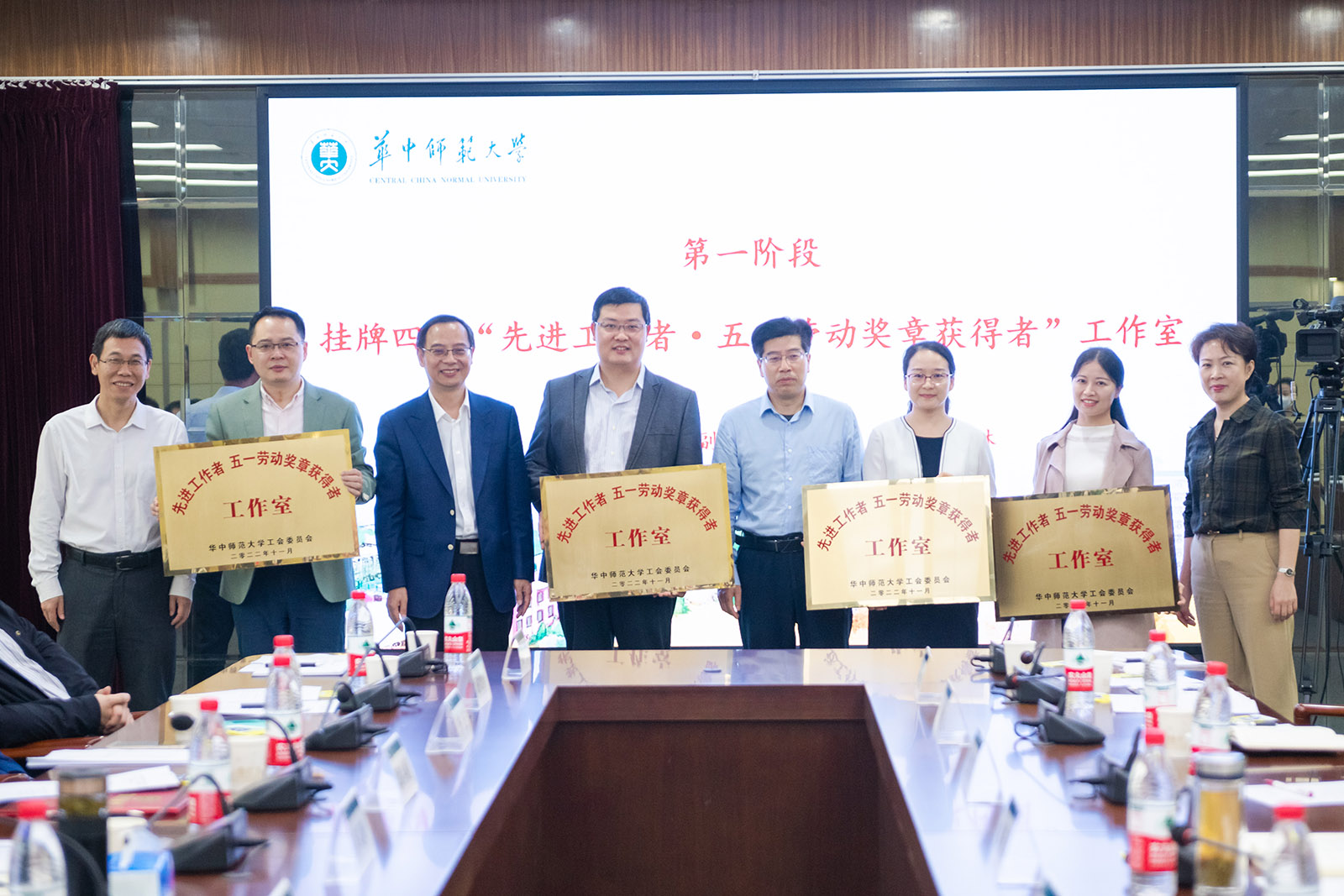 華大在線訊(記者 張嚴溢)11月12日,“先進工作者·五一勞動獎章獲得者”工作室授牌儀式在逸夫國際會議中心二樓會議室舉行。校黨委副書記查道林、副校長彭雙階、李鴻飛出席。校領導與人事部負責人為教育學院田友誼教授、文學院陳蓓副教授、外國語學院劉文波副教授、數學與統計學學院代晉軍副教授四位第二批“先進工作者·五一勞動獎章獲得者”工作室主持人授牌。
