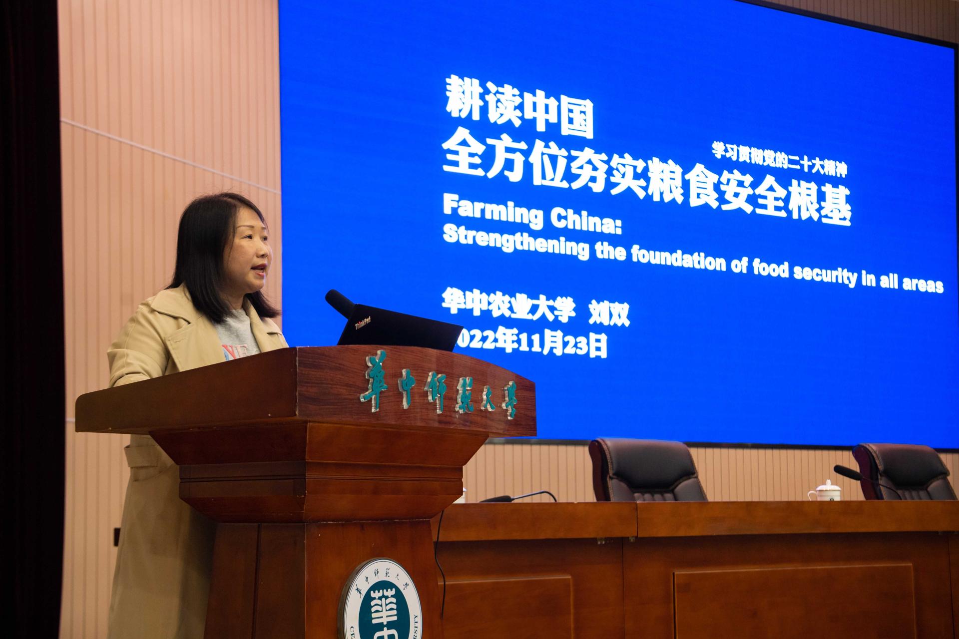 會上,黨的二十大代表、長陽縣花坪小學(xué)副校長劉發(fā)英,華中農(nóng)業(yè)大學(xué)馬克思主義學(xué)院副教授劉雙,武漢大學(xué)水利水電學(xué)院2022級水工結(jié)構(gòu)工程專業(yè)博士生唐嘉博,我校優(yōu)秀學(xué)生宣講小分隊,為與會代表展示了宣講內(nèi)容。