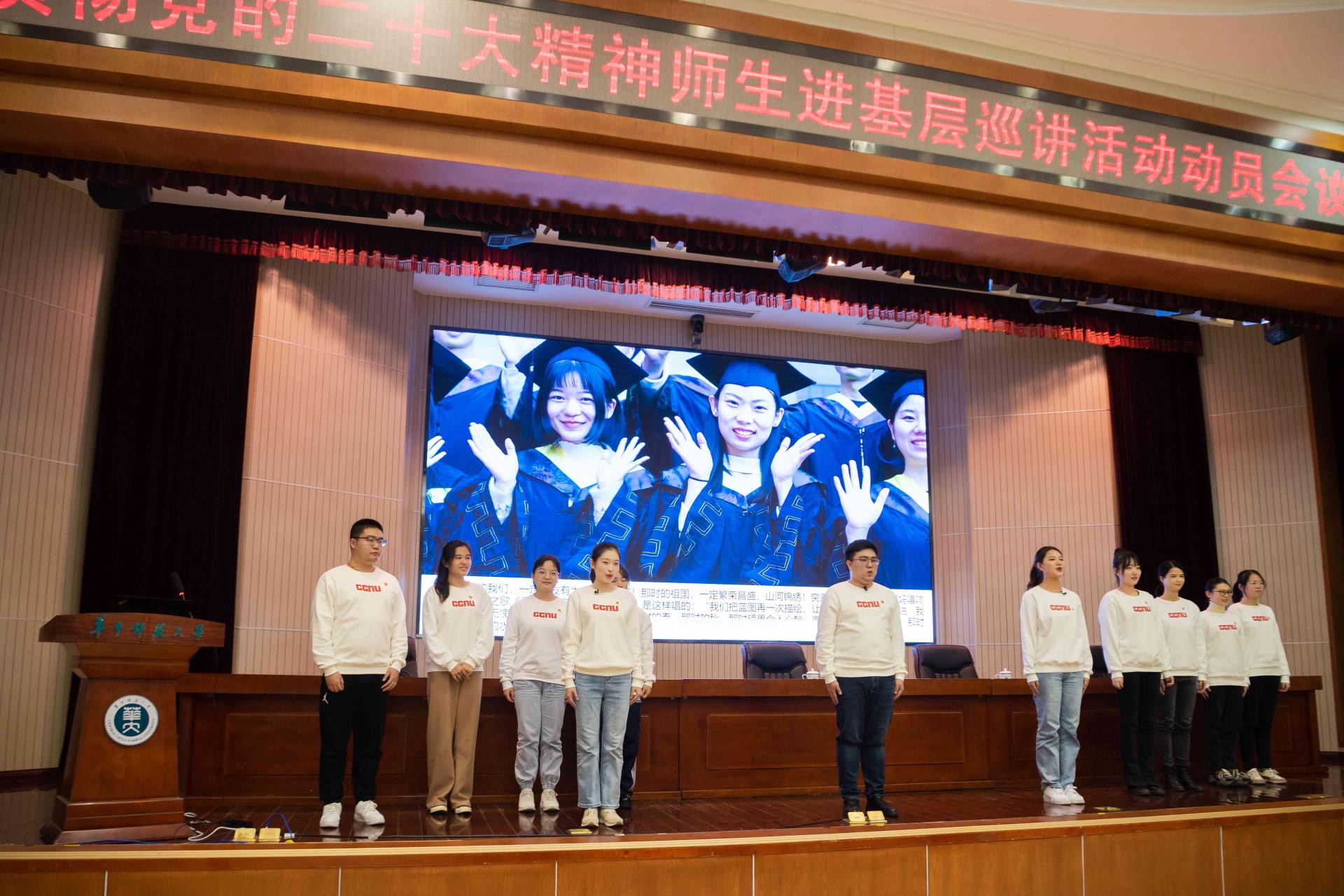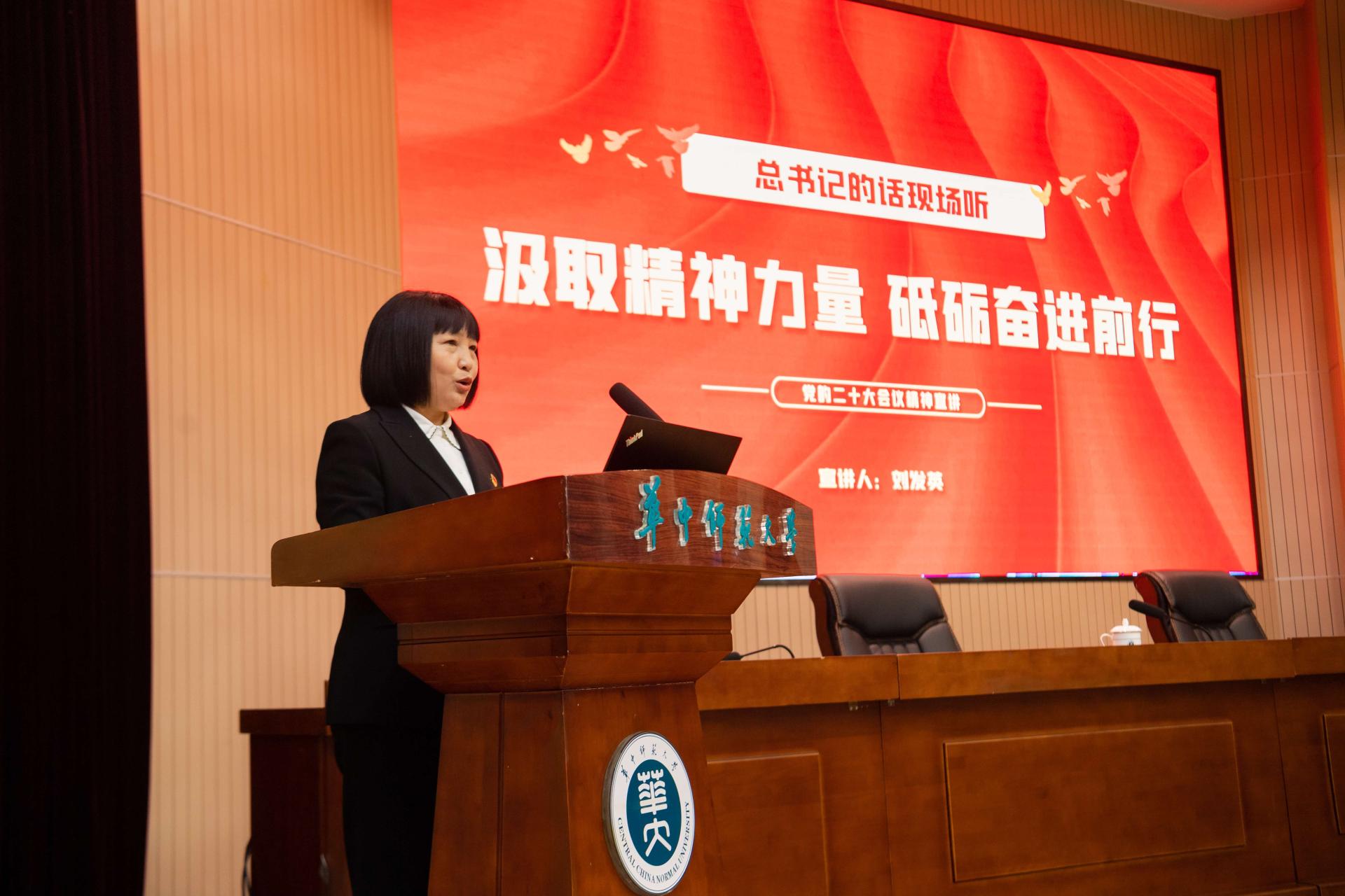 郝芳華在致辭中表示,黨的二十大是黨和國家事業(yè)的行動指南,是教育高質(zhì)量發(fā)展的行動指南。學(xué)校黨委高度重視黨的二十大精神的學(xué)習(xí)宣傳貫徹工作,通過校院兩級黨委理論學(xué)習(xí)中心組學(xué)習(xí)、邀請黨的二十大代表進(jìn)校園、組建“理響華師”理論宣講團(tuán)、構(gòu)建“1+38”校院一團(tuán)多隊宣講體系等系列舉措,全覆蓋地開展二十大精神校園巡講。學(xué)校將積極參與學(xué)習(xí)貫徹黨的二十大精神師生進(jìn)基層巡講活動,推動習(xí)近平新時代中國特色社會主義思想和黨的二十大精神深入人心,促進(jìn)學(xué)校發(fā)展。