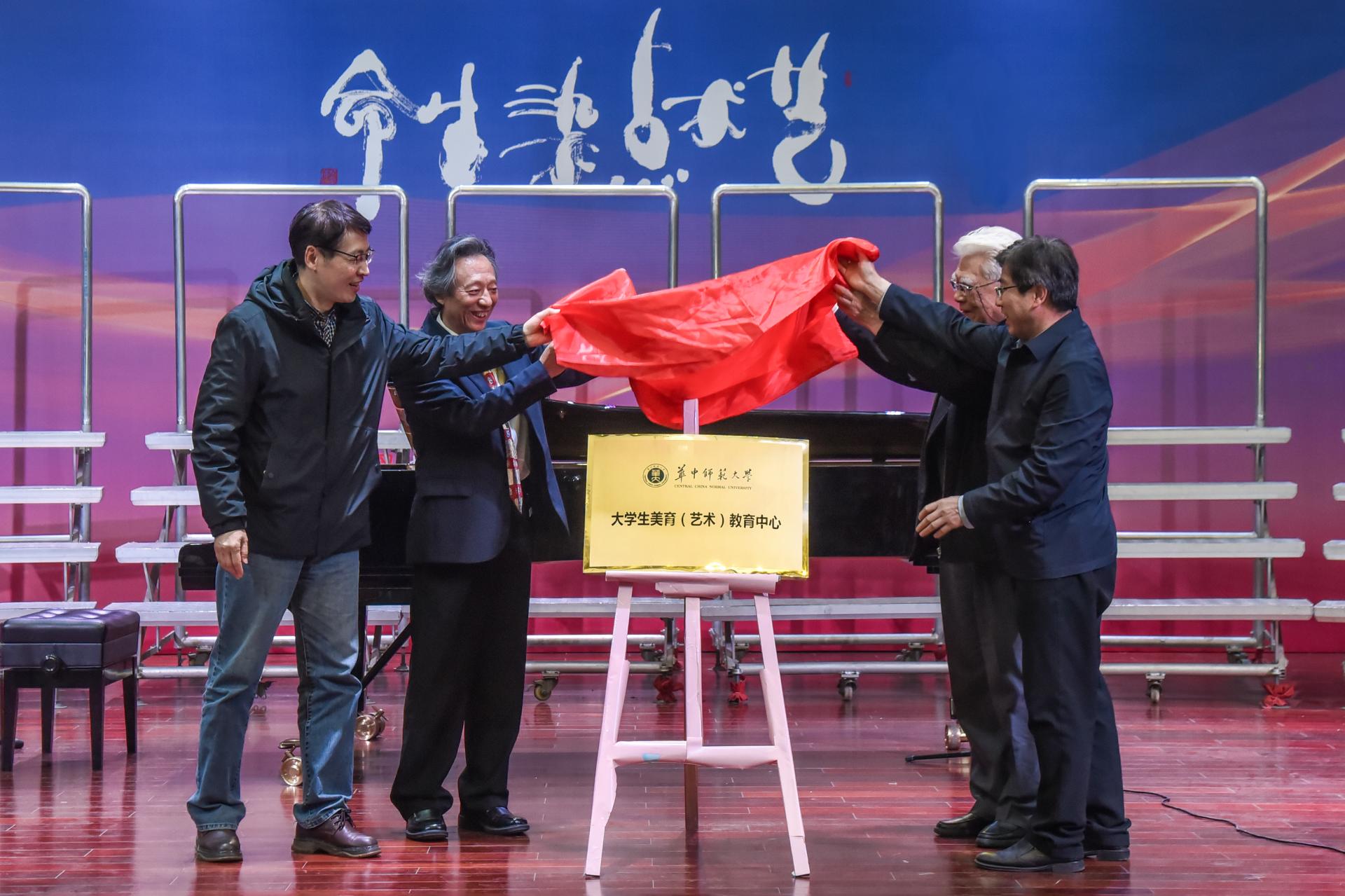 在閉幕式上,副校長彭雙階、校大學生美育(藝術)教育中心主任田曉寶教授、教育部藝術教育委員會原常務副主任周蔭昌、校本科生院負責人共同為華中師范大學美育(藝術)教育中心揭牌。合唱節期間,學校還舉行了藝術教育發展規劃會議,副校長李鴻飛、相關職能部門負責人及專家學者出席。大學生美育(藝術)教育中心負責人從美育生命、守正創新、建章立制等七個方面進行了工作介紹,與會嘉賓圍繞如何推進學校美育高質量發展進行了研討。