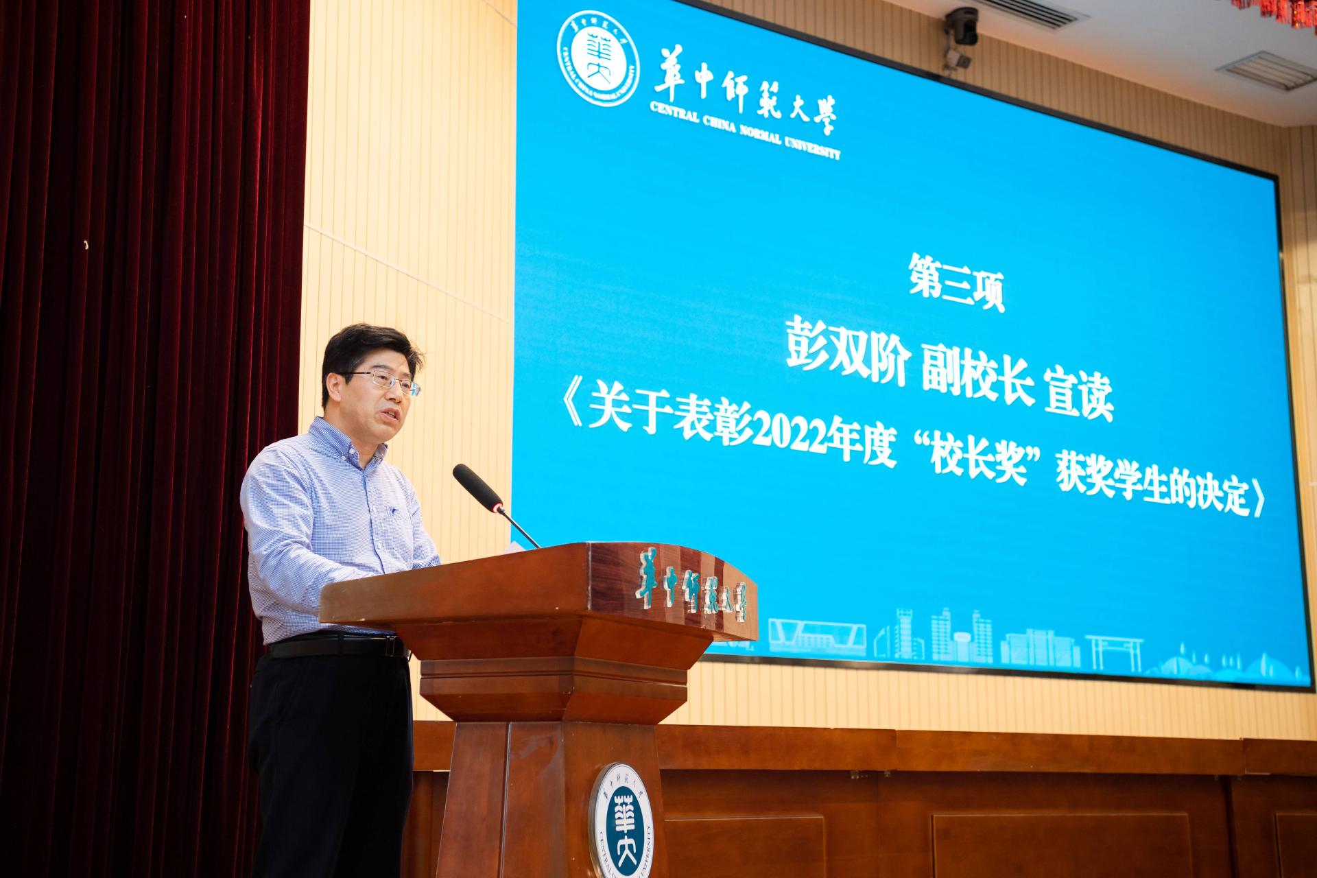 副校長彭雙階宣讀《關于表彰2022年度“校長獎”(學生)的決定》