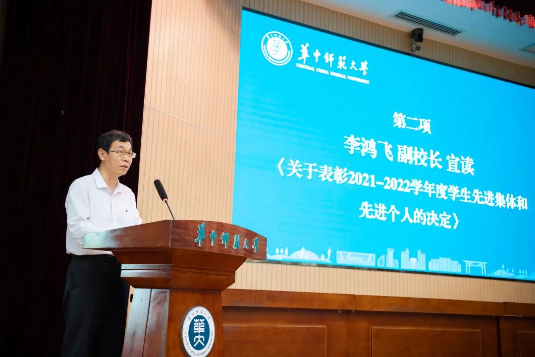副校長李鴻飛宣讀《關于表彰2021-2022學年度學生先進集體和先進個人的決定》