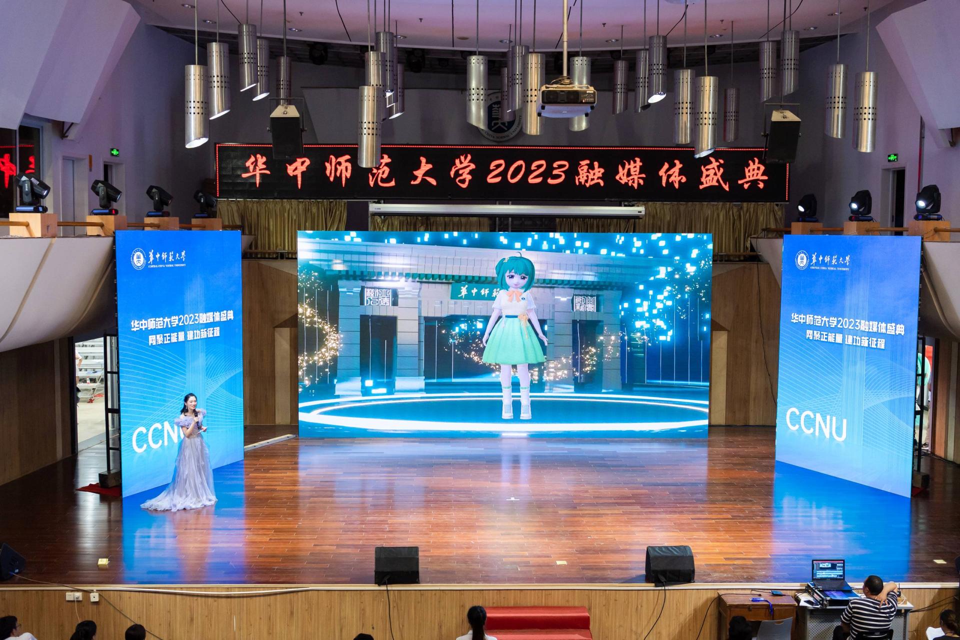 華大在線訊(記者 郝日虹)會說出“忠誠博雅、樸實剛毅”的華師精神和“求實創新、立德樹人”的華師校訓,會與觀眾拉家常,還會跳舞蹈《愛你》……4月17日,在華中師范大學2023融媒體盛典上,融媒體中心委托師生創新團隊開發,采用三維建模及非真實感渲染技術、穿戴式動作捕捉及面部表情捕捉技術制作的虛擬主播“華小詩”形象正式發布,引起了在場觀眾的興趣。