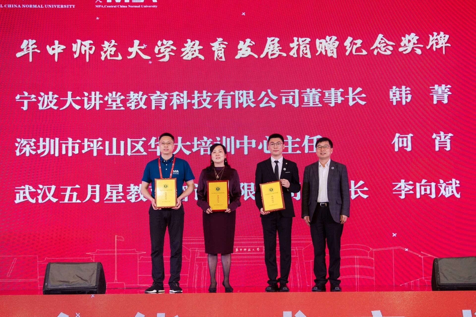 任友洲、李鴻飛為朱立言、蔡旭、徐勇、范軍、張立榮、劉筱紅頒發華中師范大學MPA教育突出貢獻獎,感謝他們為學校MPA專業學位教育作出貢獻。