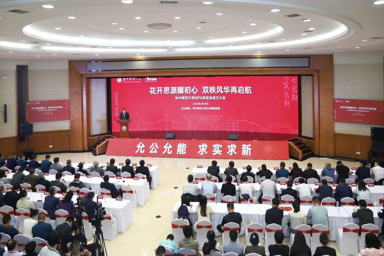華大在線訊(通訊員 廖偉 宗佳敏)為迎接我校120周年校慶,搭建校友平臺,凝聚校友力量,共譜奮進華章,4月30日,華中師范大學MPA校友會成立大會在科學會堂一樓報告廳舉行。校黨委書記夏立新,副校長彭南生、任友洲、李鴻飛出席。來自全國各地的MPA校友、公共管理學院退休老教師代表及師生代表歡聚一堂,暢敘情誼,共襄盛會。成立大會以“線上線下”相結合的方式舉行。