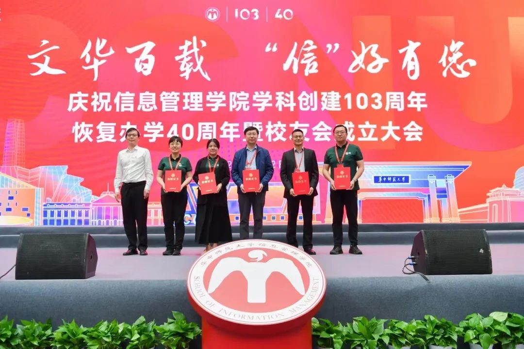 華大在線訊(記者 郝日虹 通訊員 張夢雨)文華百載學(xué)脈不朽薪火相傳,辦學(xué)卌年初心不改再啟航程。5月2日,我校信息管理學(xué)院學(xué)科創(chuàng)建103周年、恢復(fù)辦學(xué)40周年暨校友會成立大會在佑銘體育館舉行。校黨委書記夏立新、校黨委副書記查道林、副校長彭雙階、校黨委副書記陳迪明,以及各職能部門和學(xué)院(學(xué)部)負(fù)責(zé)人,各地方、兄弟單位代表出席大會。來自海內(nèi)外各地的信息管理學(xué)院院友、學(xué)院退休教師以及師生代表,相聚桂子山,共憶年少事,共話校友情,共同促進(jìn)學(xué)院發(fā)展,續(xù)寫學(xué)院未來新篇章。大會由信息管理學(xué)院黨委書記王雨露主持,并在線上同步直播。