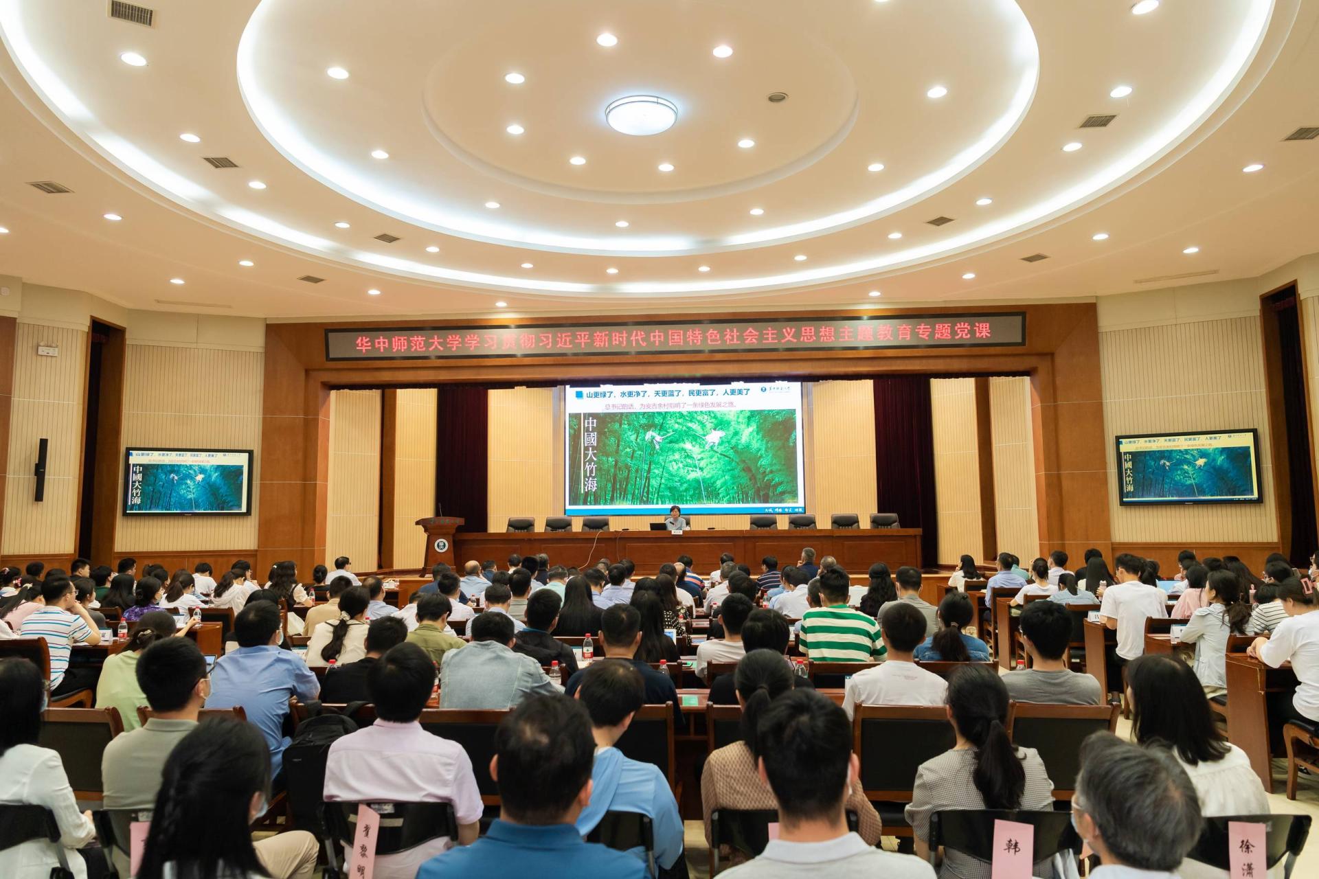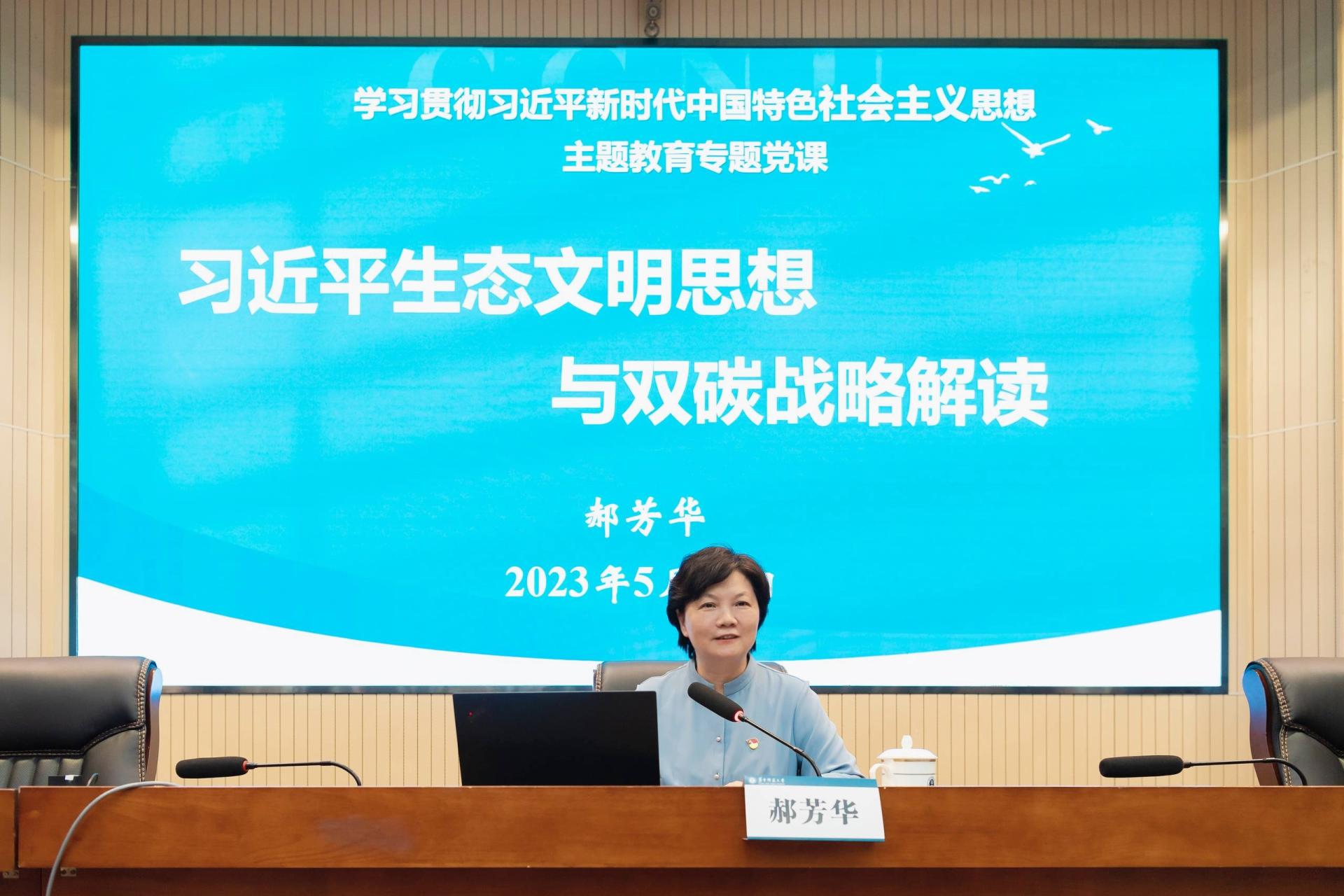 華大在線訊(記者 郝日虹)5月15日,我校學習貫徹習近平新時代中國特色社會主義思想主題教育專題黨課在科學會堂一樓報告廳舉行。校長郝芳華以《習近平生態(tài)文明思想與“雙碳”戰(zhàn)略解讀》為題,為學校高層次人才、各人才培養(yǎng)單位負責人、青年教師代表、機關干部代表以及學生黨支部書記、黨員骨干、學生干部代表等講授專題黨課,通過深入闡釋習近平生態(tài)文明思想,系統(tǒng)解讀雙碳戰(zhàn)略,號召師生們踐行習近平生態(tài)文明思想,挑起雙碳戰(zhàn)略的時代擔當。本次專題黨課由校黨委副書記陳迪明主持,教育部直屬高校主題教育第八巡回指導組劉國棟同志參加。