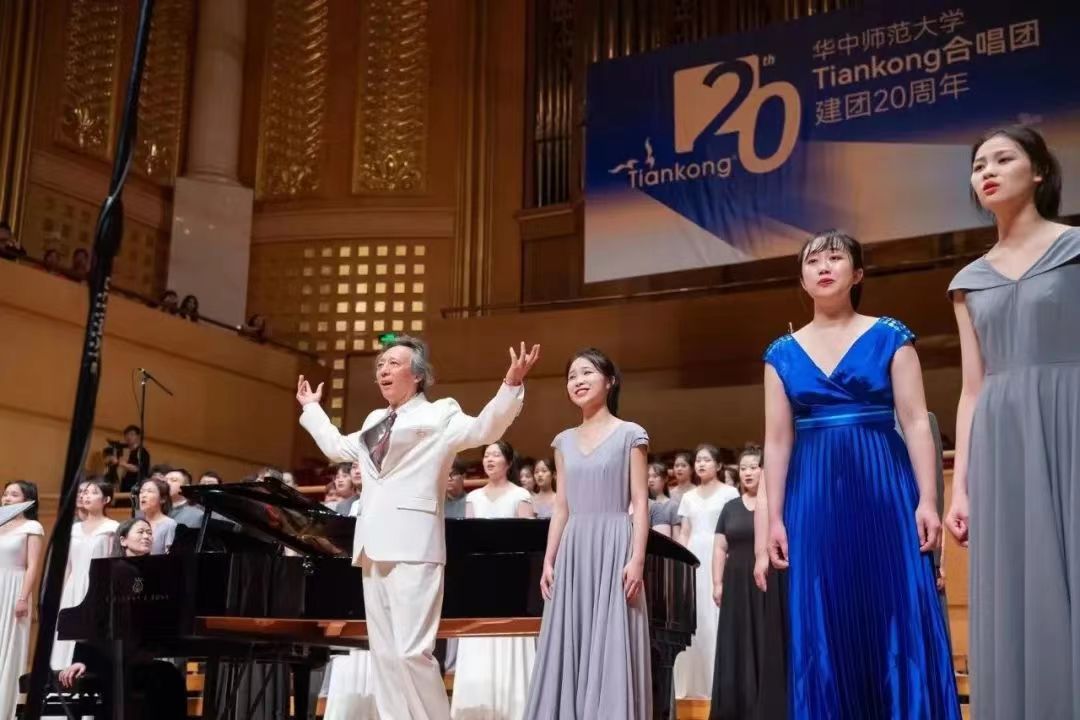 華大在線訊(通訊員 張思洋 周熠)5月21日 ,Tiankong合唱團(tuán)建團(tuán)20周年慶典音樂會在武漢市琴臺音樂廳舉行。原華中科技大學(xué)黨委書記路鋼,湖北省政協(xié)常委、省人民政協(xié)理論研究會會長翟天山,原華中師范大學(xué)黨委書記馬敏,中國地質(zhì)大學(xué)(武漢)黨委書記黃曉玫,武漢理工大學(xué)校長楊宗凱,中國太保產(chǎn)險湖北分公司黨委書記、總經(jīng)理周厚鈥,華中師范大學(xué)副校長任友洲、李鴻飛,武漢市團(tuán)委副書記郎坤,以及來自湖北省委宣傳部、湖北省教育廳、湖北省群藝館相關(guān)領(lǐng)導(dǎo)和來自各地合唱協(xié)會的嘉賓出席本場音樂會。Tiankong合唱團(tuán)創(chuàng)始人、音樂學(xué)院教授田曉寶擔(dān)任藝術(shù)總監(jiān),音樂學(xué)院副教授鄧暢擔(dān)任音樂總監(jiān),Tiankong合唱團(tuán)老團(tuán)員荊晶主持音樂會,近200名師生共同參演。
