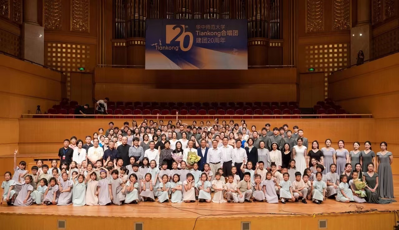 華中師范大學(xué)Tiankong合唱團(tuán)成立于2003年,逐步形成了立足于中華母語文化的Tiankong合唱藝術(shù)呈現(xiàn)形態(tài)及教學(xué)訓(xùn)練模式,相繼拓展建成Tiankong混聲合唱團(tuán)、少兒合唱團(tuán)和男聲合唱團(tuán),多年來在國內(nèi)外舉辦近千場專場音樂會,曾獲2001年“全國大學(xué)生藝術(shù)歌曲演唱比賽”專業(yè)組一等獎、2005年“全國大學(xué)生藝術(shù)展演”專業(yè)組一等獎、2008 年中央電視臺“第十三屆全國青年歌手大獎賽”合唱類比賽銀獎等國內(nèi)外獎項(xiàng),被業(yè)界贊譽(yù)為“新的中國合唱風(fēng)格”“我國合唱的一面旗幟”。
