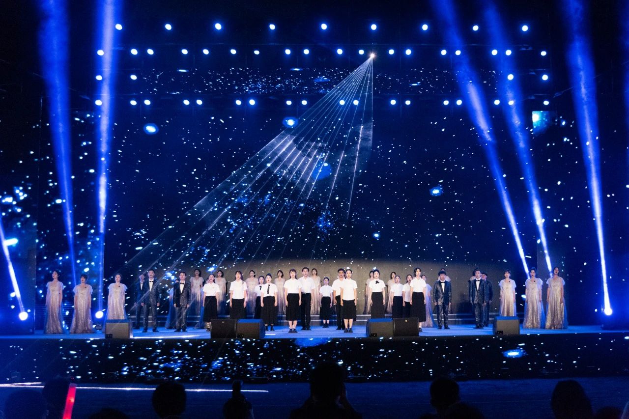 暖場活動《尋找現(xiàn)場的你》使用搖臂隨機航拍并投屏,同學(xué)們揮舞著熒光棒熱情呼喊,現(xiàn)場氣氛瞬間被點燃。“南湖浪涌,桂香靈動……”,伴隨著畢業(yè)生們齊唱校歌的聲音,晚會正式拉開帷幕。