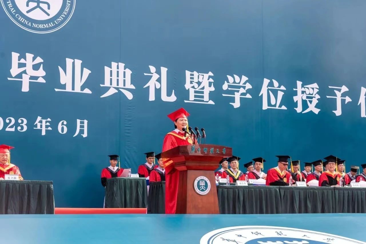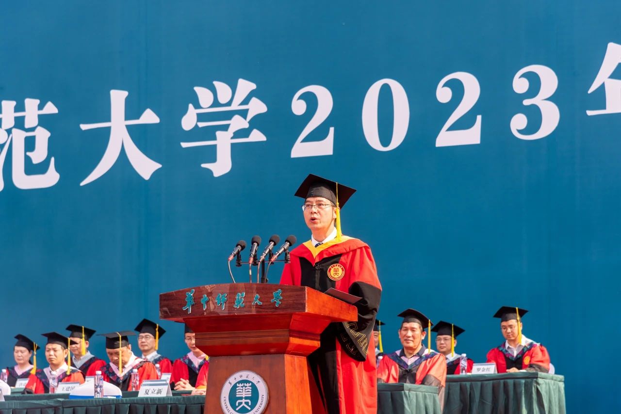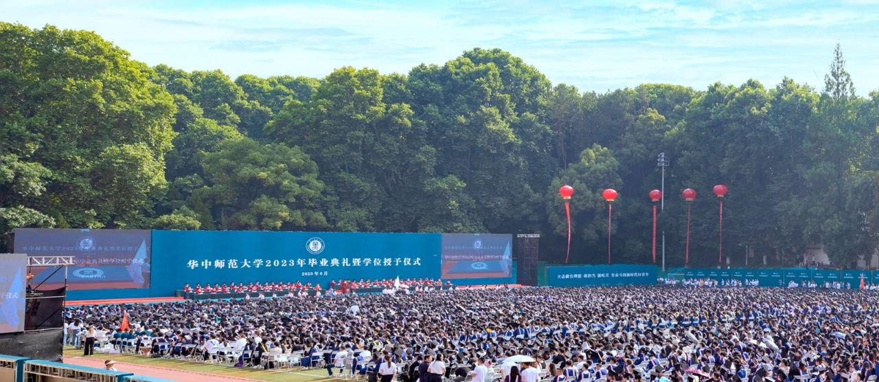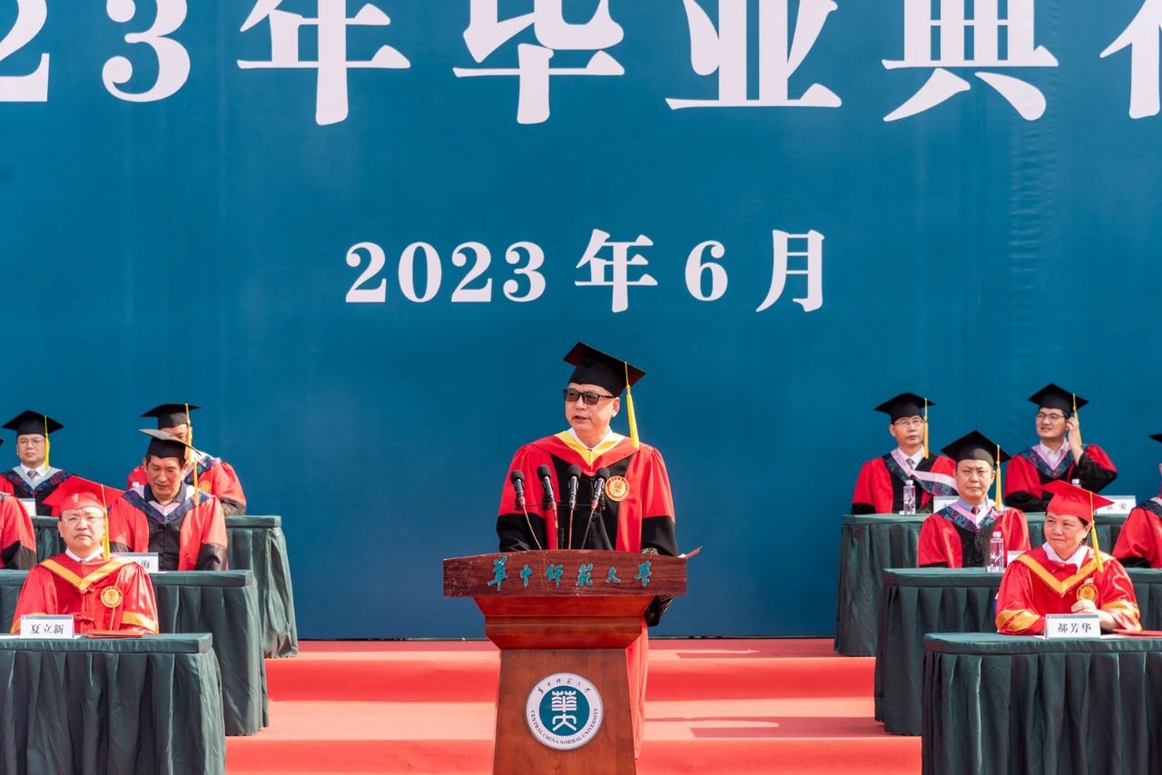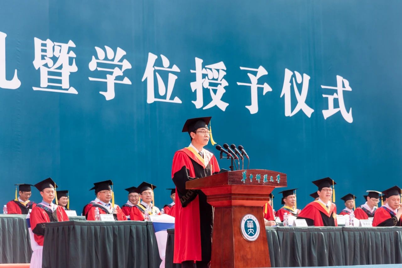 華大在線訊(記者 王麗婧)6月14日,我校2023年畢業典禮暨學位授予儀式在佑銘體育場舉行。校黨委書記夏立新,校長郝芳華,校黨委副書記查道林,副校長彭南生、李鴻飛,校長助理馮淑霞,以及學校學術委員會代表、教師代表、校友代表、各職能部門和學院負責人出席,與家長代表共同見證8248名2023屆畢業生圓滿完成學業、開啟嶄新人生征程的輝煌時刻。典禮由校黨委副書記陳迪明主持。