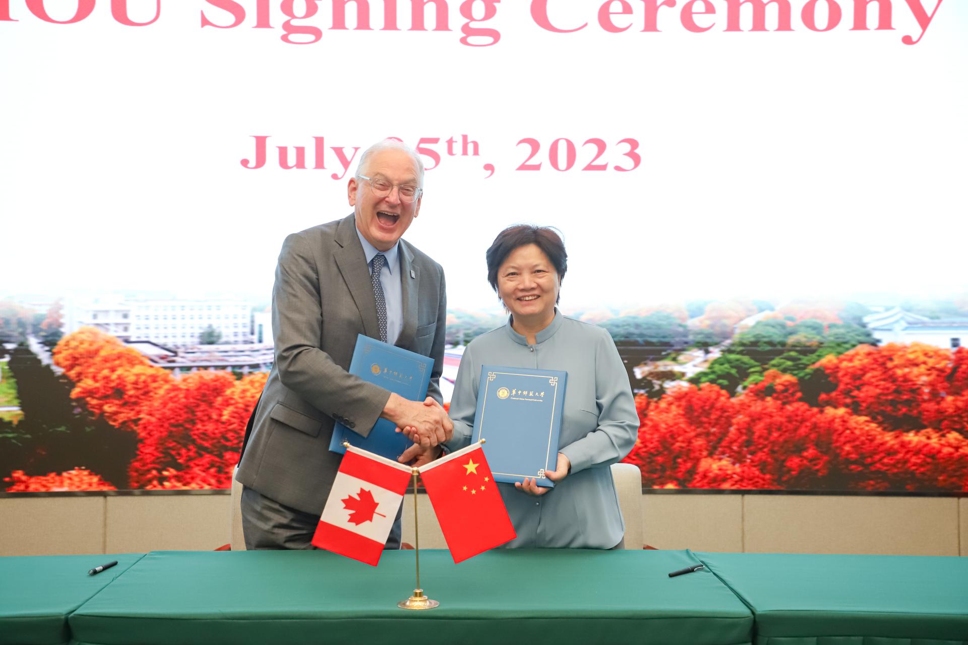 華大在線訊(通訊員 王盛夏)7月25日,加拿大渥太華大學(xué)校長雅克·弗雷蒙率團(tuán)訪問我校,校長郝芳華、副校長彭雙階會見了代表團(tuán)一行。座談會上,雙方續(xù)簽了合作諒解備忘錄并深入探討了在化學(xué)、教育學(xué)等領(lǐng)域開展學(xué)生聯(lián)合培養(yǎng)、聯(lián)合科研、聯(lián)合舉辦國際研討會等務(wù)實合作。
