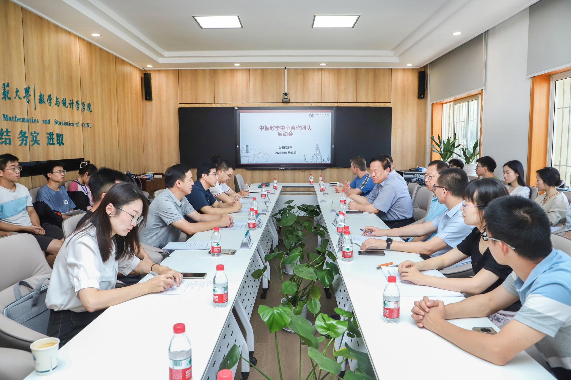 華大在線訊(通訊員 數(shù)軒)8月3日,中俄數(shù)學(xué)中心國(guó)際合作團(tuán)隊(duì)啟動(dòng)會(huì)在校舉行。中俄數(shù)學(xué)中心主任、中國(guó)科學(xué)院院士、北京大學(xué)張繼平教授,副校長(zhǎng)彭雙階,中國(guó)科學(xué)技術(shù)大學(xué)陳洪佳教授,美國(guó)羅格斯大學(xué)郭鋰教授,英國(guó)蘭卡斯特大學(xué)Andrey Lazarev教授,吉林大學(xué)生云鶴教授,德國(guó)哥廷根大學(xué)朱晨暢教授出席啟動(dòng)會(huì)。