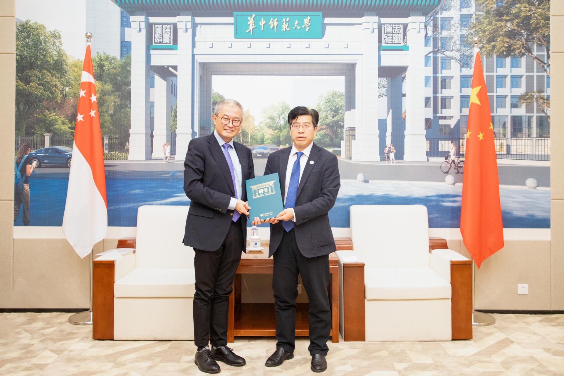 華大在線訊(通訊員 曹璐萍)4月9日,新加坡南洋理工大學常務副校長兼教務長林杉(LING San)來訪并受聘為我校名譽教授。聘任儀式在校史館一樓貴賓廳舉行,校長彭雙階出席。人事部、國際合作與交流處、數學與統計學學院相關負責人參加。