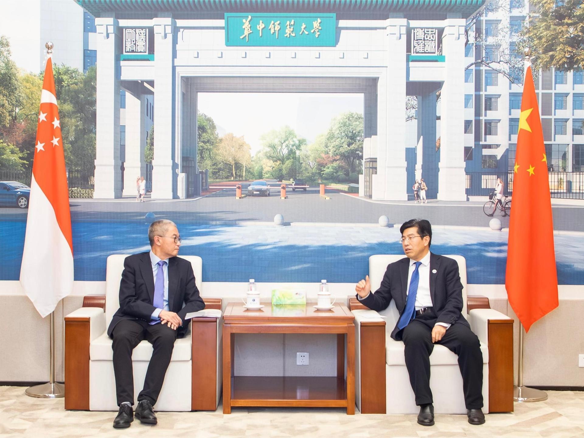 彭雙階對林杉教授來訪表示歡迎,并對其專程錄制視頻祝賀我校120周年校慶表示衷心感謝。他在講話中分享了學校在數字化和開放化方面的舉措,介紹了我校教育數字化建設情況以及取得的成績,希望林杉能夠為我校國際化發展及數學與統計學學院的學科建設建言獻策,進一步推動華師與南洋理工大學開展更多領域、更深層次的務實合作,實現共贏發展。