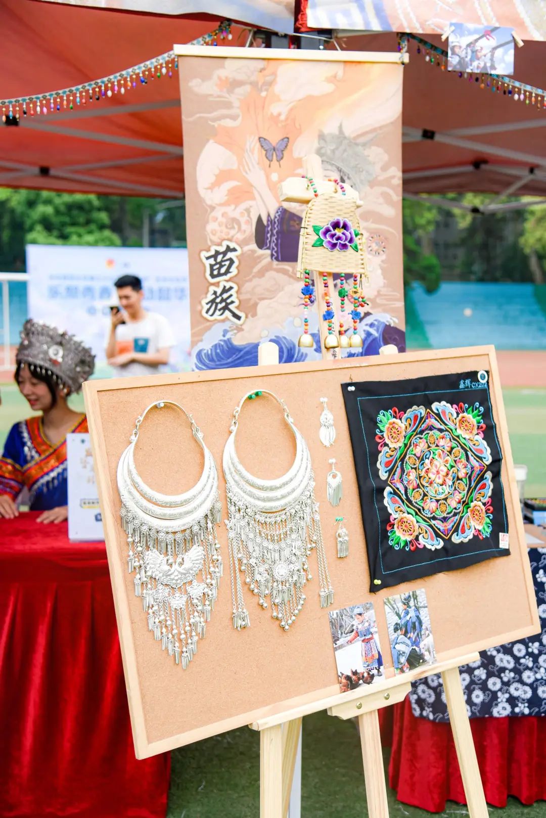 “我們的展位滿載著壯族的瑰寶。親手制作的酸嘢,酸爽開胃,讓人一嘗難忘;五色糯米飯色彩斑斕,每一口都充滿了家鄉(xiāng)的味道。還有趣味橫生的壯語(yǔ)游戲,讓你在歡聲笑語(yǔ)中感受壯族的獨(dú)特魅力。”外國(guó)語(yǔ)學(xué)院2022級(jí)本科生邵可涵身穿民族服飾,向來(lái)往的同學(xué)們熱心介紹著。