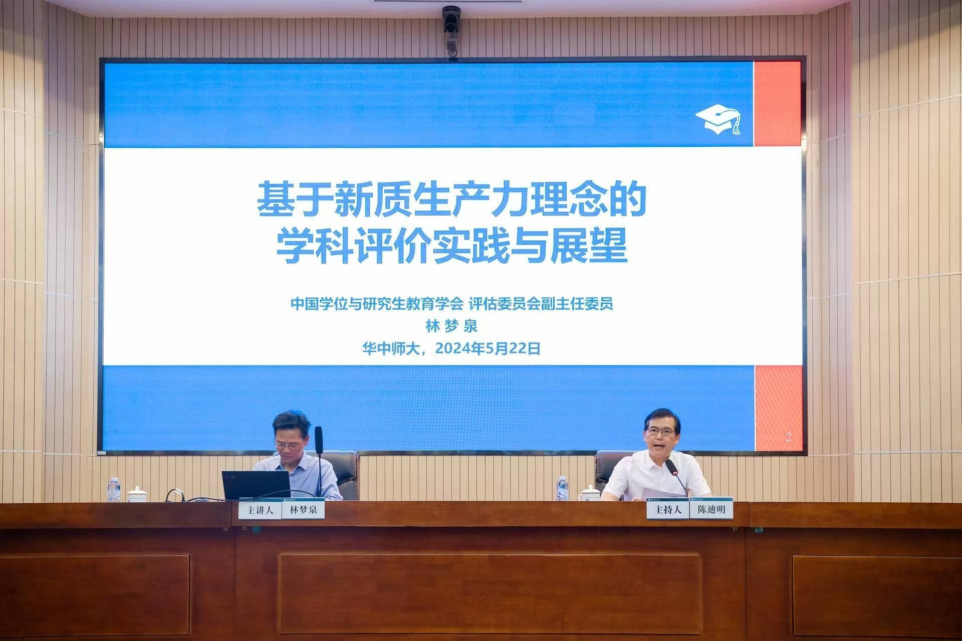 華大在線訊(通訊員 張琳)5月22日,中國(guó)學(xué)位與研究生教育學(xué)會(huì)評(píng)估委員會(huì)副主任委員、教育部學(xué)位中心原副主任、北京理工大學(xué)博士生導(dǎo)師林夢(mèng)泉做客“干部大講堂”,為相關(guān)職能部門及二級(jí)學(xué)院干部作專題報(bào)告。會(huì)議由校黨委副書記陳迪明主持。