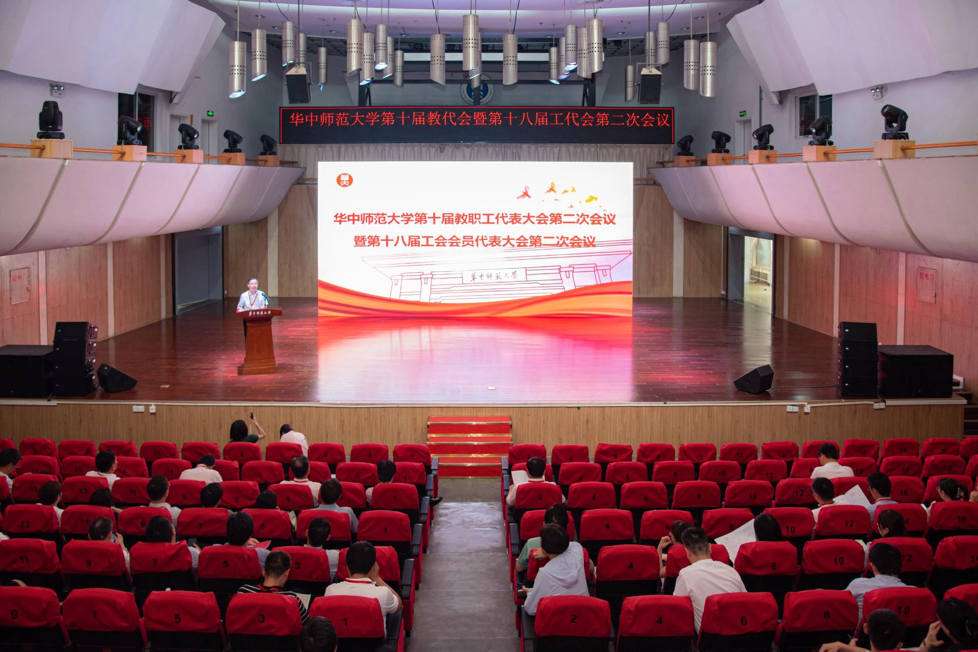 華大在線訊(記者 華軒)5月25日,我校第十屆教代會第二次會議暨第十八屆工代會第二次會議舉行。全體校領導、學校教職工正式代表、列席代表參加會議。校黨委副書記兼工會主席查道林,校黨委副書記、紀委書記劉繼文分別主持全體會議。