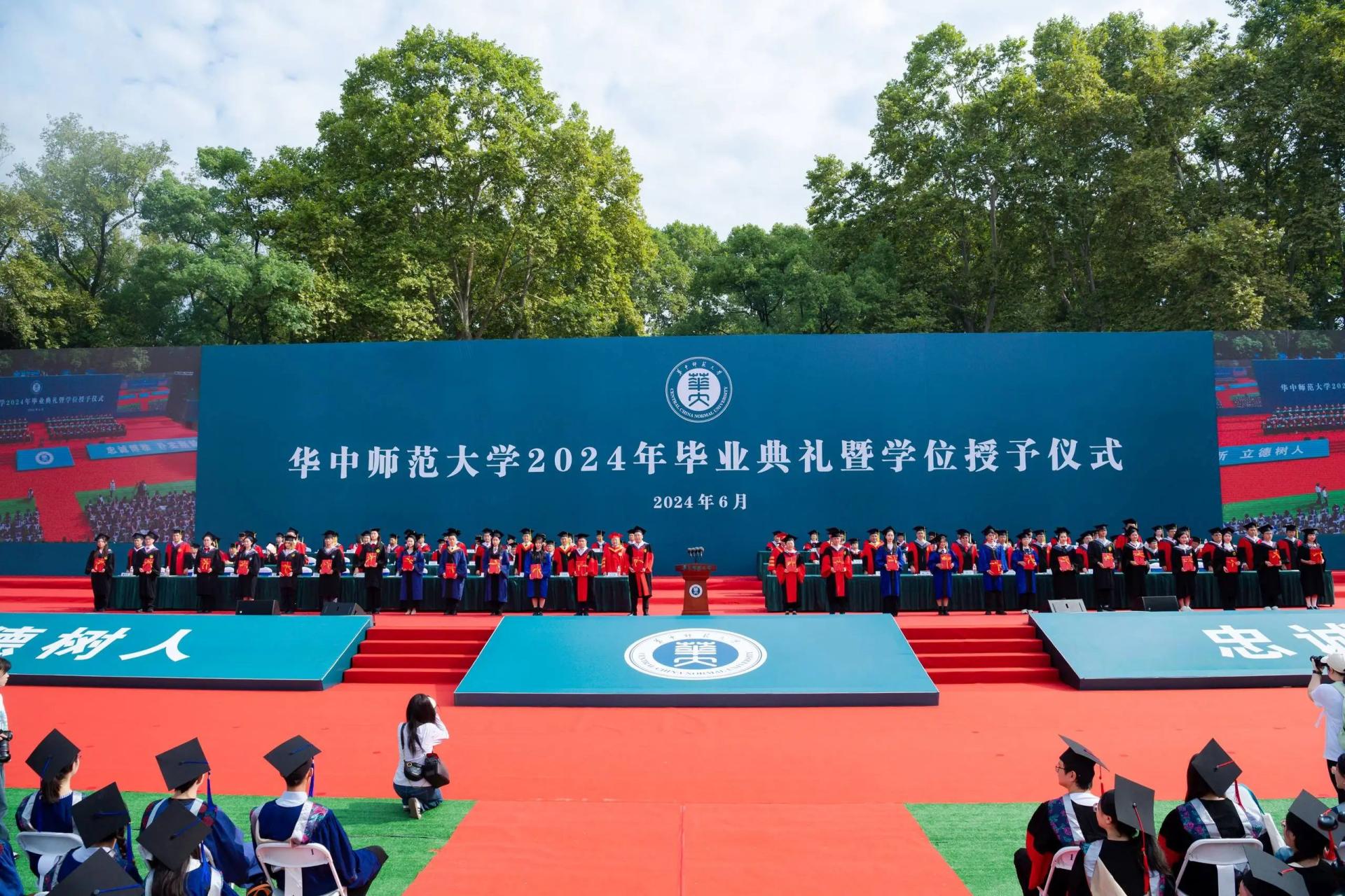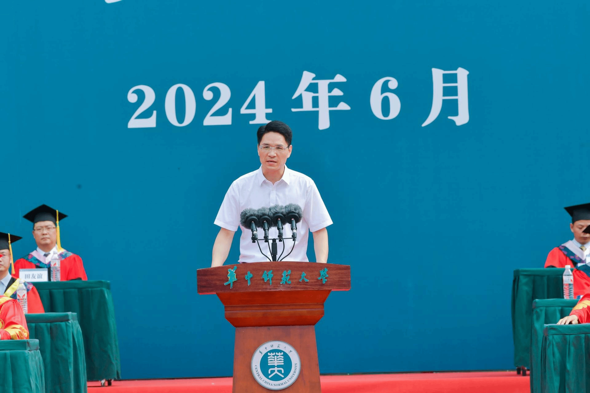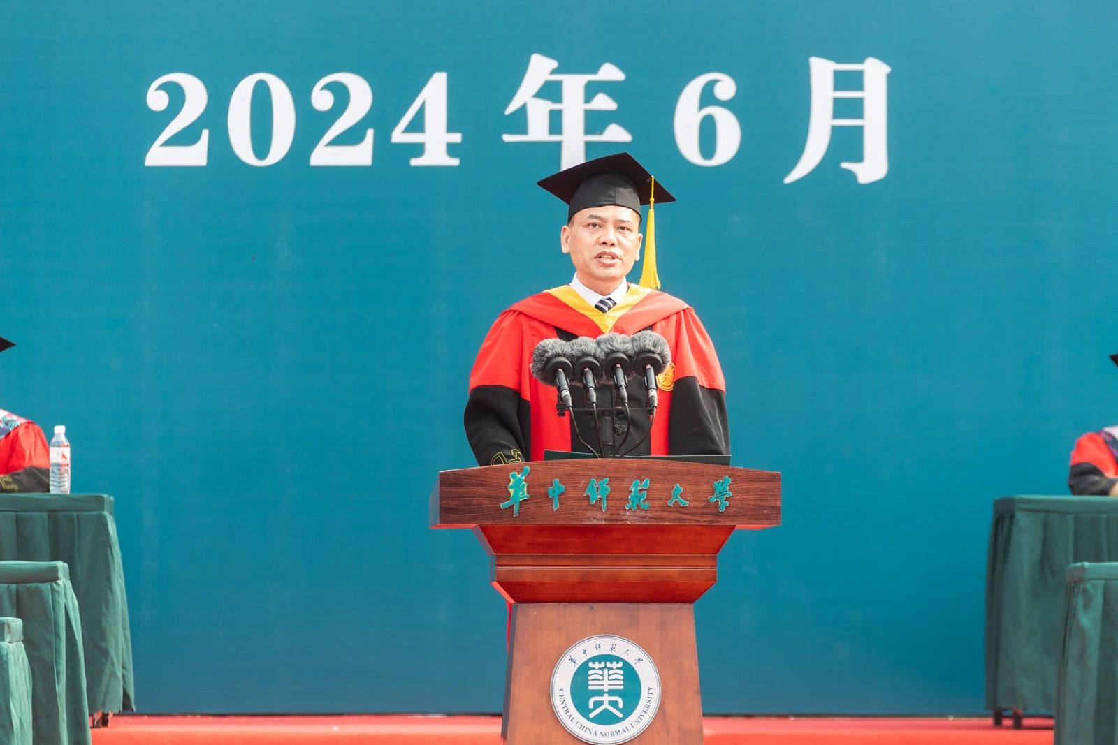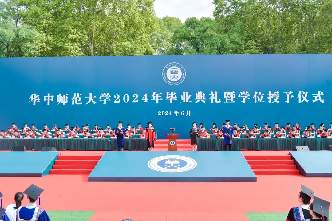 華大在線訊(通訊員 舒佳欣)6月18日,我校2024年畢業典禮暨學位授予儀式在佑銘體育場舉行。校黨委書記夏立新、校長彭雙階、校黨委副書記查道林、副校長彭南生,校黨委副書記、紀委書記劉繼文以及學校學術委員會代表、教師代表、校友代表、各職能部門和學院負責人出席,與家長代表共同見證8757名2024屆畢業生圓滿完成學業,為同學們開啟未來的追光逐夢之旅踐行。典禮由校黨委副書記陳迪明主持。