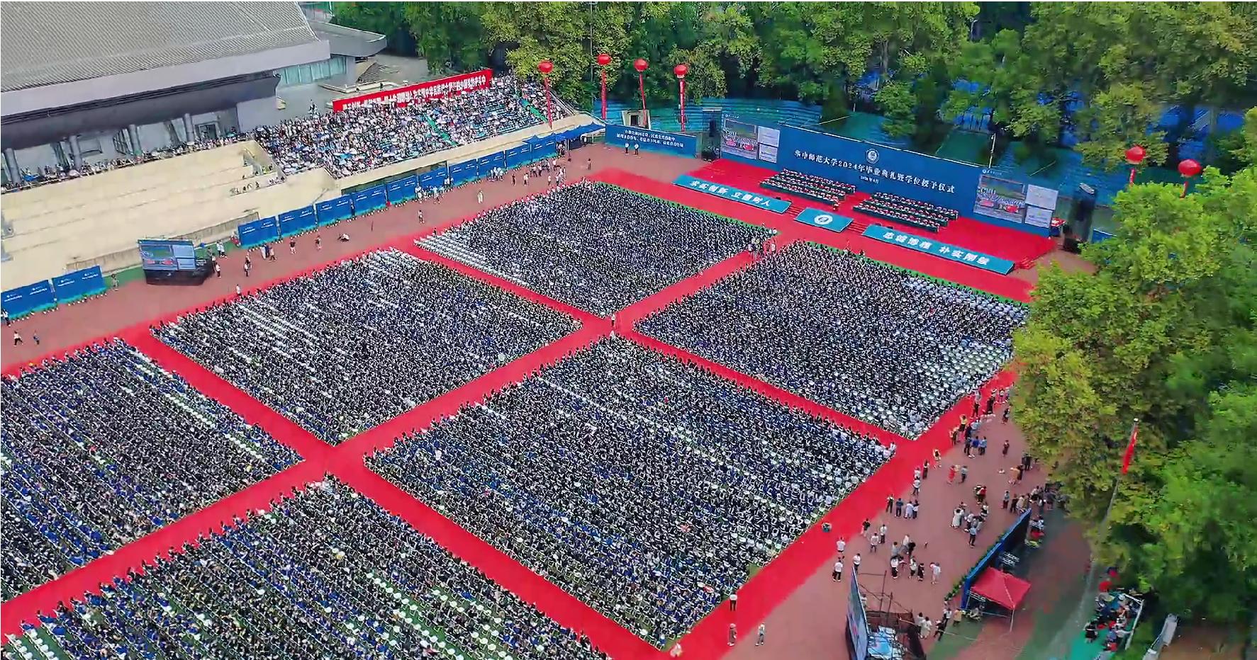 熟悉的校歌回蕩在佑銘操場。來自各學院的80余位導師分列佑銘體育場兩側,為所有畢業生一一撥穗,并頒發學位證書。
