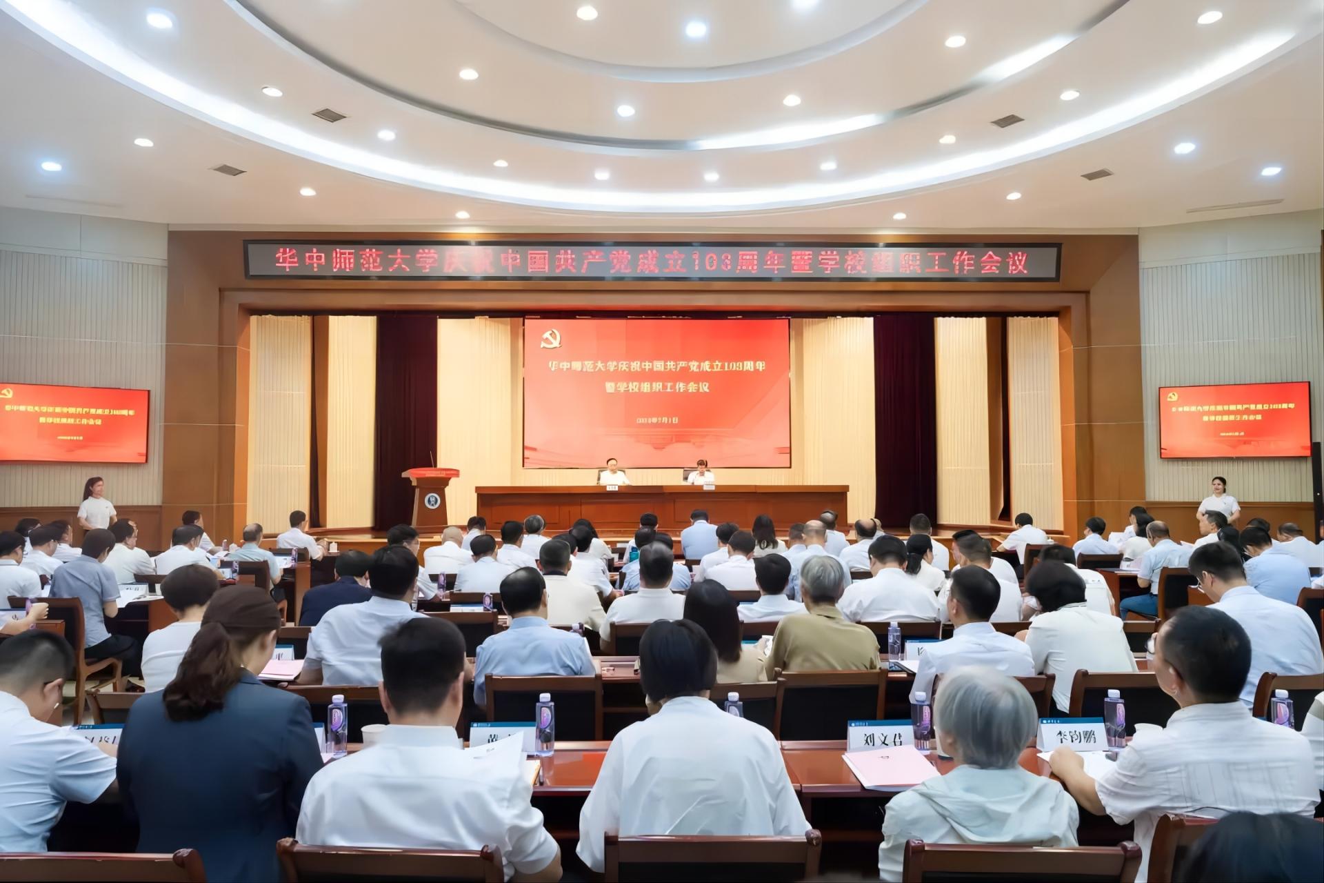 華大在線訊(通訊員 李杰 宋琴婷)7月1日,華中師范大學慶祝中國共產黨成立103周年暨學校組織工作會議在科學會堂一樓報告廳舉行。教育部直屬高校黨建工作聯絡員、中南財經政法大學原黨委副書記齊文遠出席,學校全體在校校領導、全體中層正職領導干部、黨校教師代表、師生黨支部書記及黨員代表參加會議,校長彭雙階主持會議。