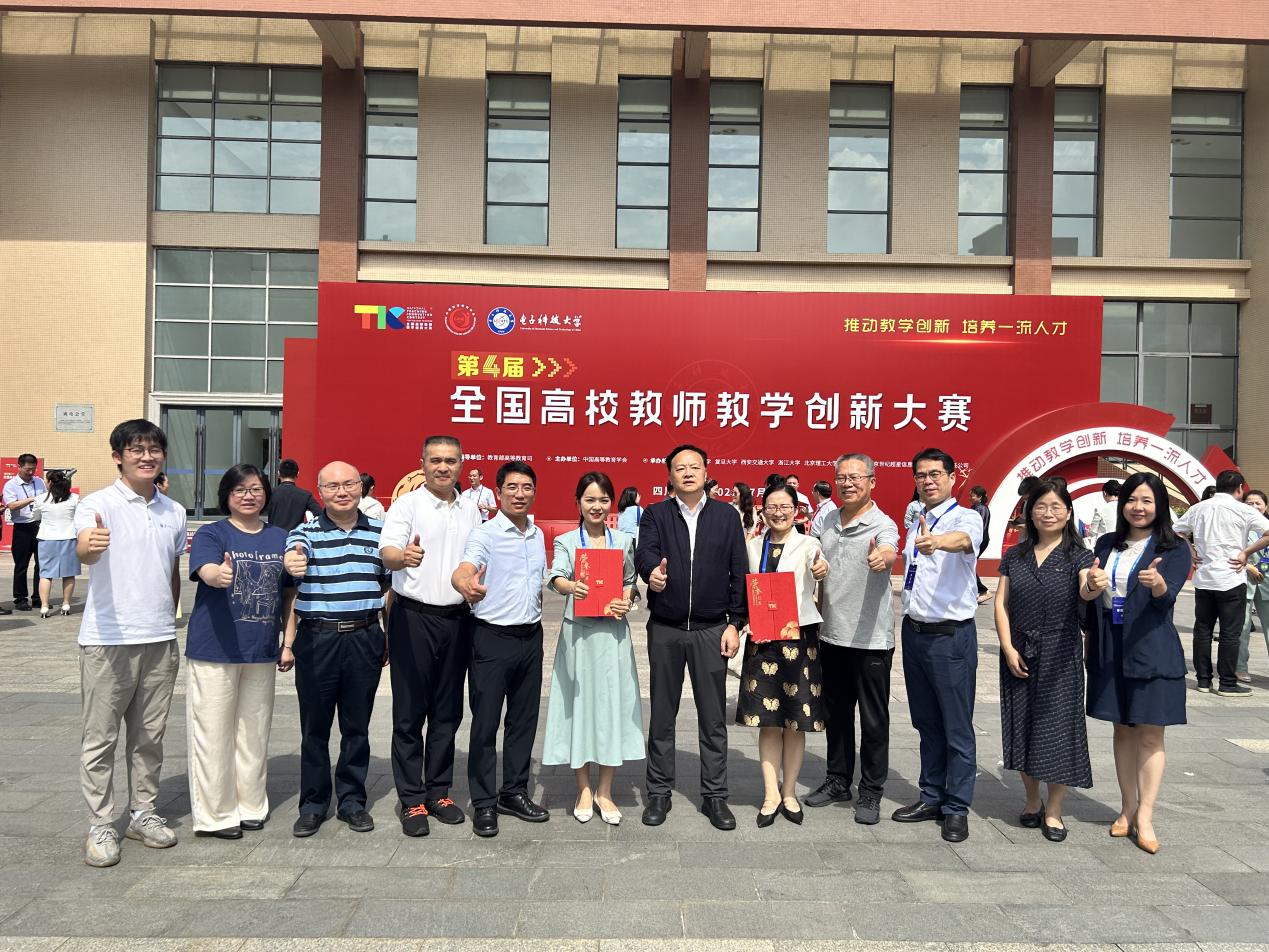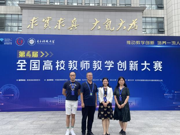 華大在線訊(通訊員 文樂勝)7月27日至31日,第四屆全國高校教師教學創新大賽在電子科技大學清水河校區舉行。文學院陳蓓教師團隊和經濟與工商管理學院李好教師團隊代表我校參加本次比賽,校黨委副書記查道林、副校長周鵬程帶隊參賽。經網絡評審和現場展示答辯,兩支團隊分別獲新文科副高組二等獎和“課程思政”中級及以下組三等獎。