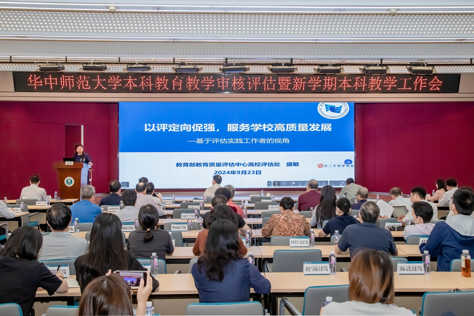 華大在線訊(記者 郝日虹)9月23日,我校本科教育教學審核評估暨新學期本科教學工作會在文科樓一樓報告廳舉行。校長彭雙階出席并講話。學校審核評估辦公室負責人,審核評估各專項工作組負責人、工作專班成員,本科教學督導員,各學院(部)院長、分管本科教學工作副院長、教學秘書,本科生院班子成員及全體工作人員參會。會議由副校長周鵬程主持。