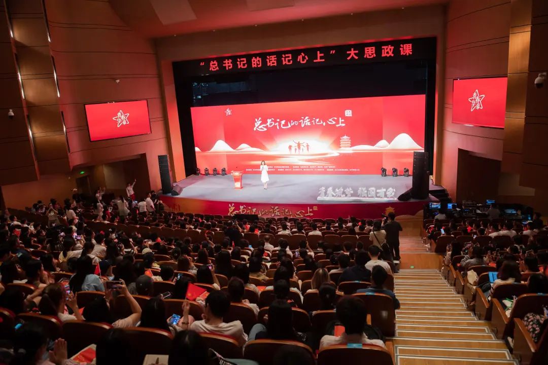 華大在線訊(記者 郝日虹 杜俊曉 劉翠蝶)青春筑夢,強國有我。9月24日,“總書記的話記心上”大思政課在大學生活動中心大禮堂開講。來自武漢大學、華中科技大學、武漢紡織大學、漢江師范學院和我校的千余名學子同上一堂走“新”更入“心”的思政課。