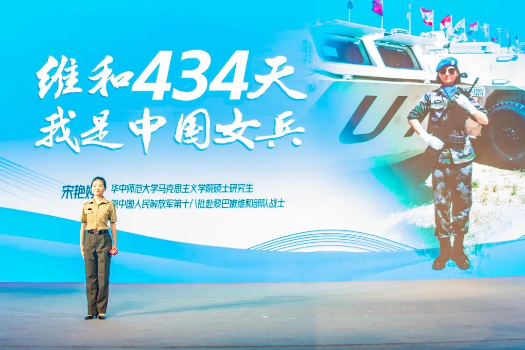 “很多人會問我,為什么要當兵?這是我從小的夢想。”我校馬克思主義學院碩士研究生、原中國人民解放軍第十八批赴黎巴嫩維和部隊戰(zhàn)士宋艷婷講述了她在黎巴嫩維和434天的故事。身著“維和藍”,她和戰(zhàn)友們清理過邊境線上的雷場,開展過人道主義救援,教過黎巴嫩兒童學習漢語……“我踏上過戰(zhàn)火紛飛的土地,深知和平來之不易;我面對過生死一線的考驗,深知富強的祖國是多么強大的后盾?!比缃竦乃纹G婷更加明白青年肩上的使命與擔當,堅定承諾“必將以奮進之姿,向未來,向明天!”