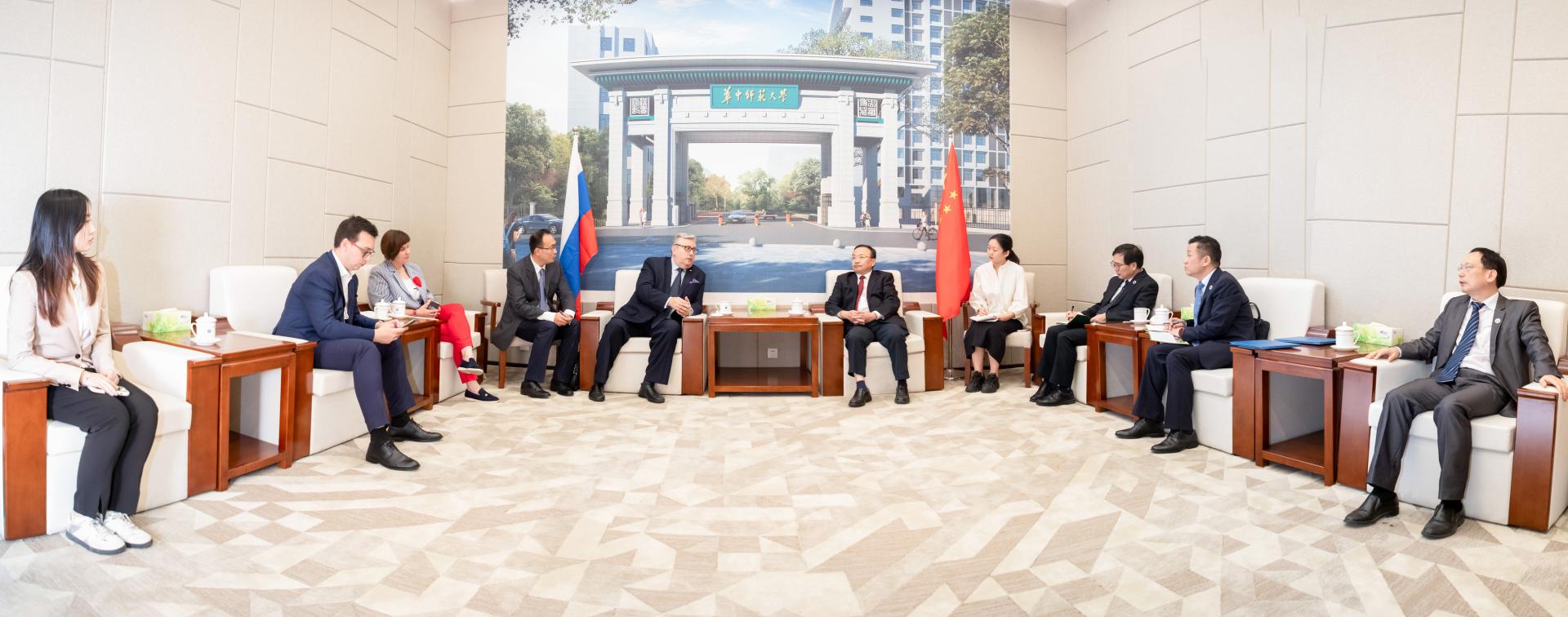 夏立新對盧布科夫一行的來訪表示熱烈歡迎,并簡要介紹了我校的辦學(xué)現(xiàn)狀。他表示,學(xué)校致力于推進(jìn)大數(shù)據(jù)、人工智能等信息技術(shù)與教育深度融合,高度重視國際化,積極構(gòu)建全球合作網(wǎng)絡(luò),助力學(xué)校高質(zhì)量發(fā)展。莫師大是華師重要的合作伙伴,兩校在中俄教育類高校聯(lián)盟框架下互動(dòng)頻繁,雙方數(shù)學(xué)、歷史等學(xué)科也保持穩(wěn)定的合作與交流。希望雙方能繼續(xù)保持密切聯(lián)系,推動(dòng)兩校合作繼續(xù)走深走實(shí),行穩(wěn)致遠(yuǎn)。