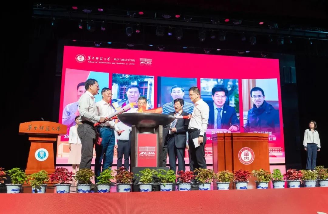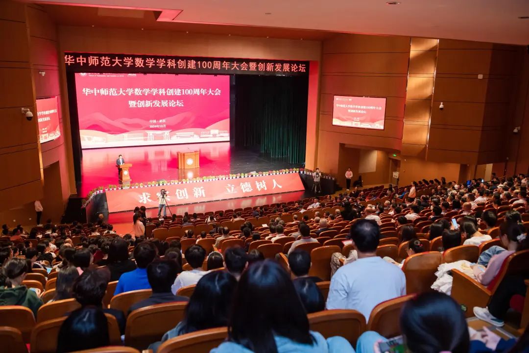 華大在線訊(通訊員 數(shù)軒)10月19日,我校數(shù)學(xué)學(xué)科創(chuàng)建100周年大會(huì)暨創(chuàng)新發(fā)展論壇在大學(xué)生活動(dòng)中心大禮堂舉行。中國(guó)科學(xué)院院士田剛、席南華、江松、張平文、張繼平、方復(fù)全、陳松蹊、田野、沈維孝,香港中文大學(xué)數(shù)學(xué)科學(xué)研究所執(zhí)行所長(zhǎng)辛周平,香港理工大學(xué)教授楊彤,校黨委書記夏立新、校長(zhǎng)彭雙階出席大會(huì)。國(guó)家自然科學(xué)基金委員會(huì)、國(guó)務(wù)院學(xué)科評(píng)議組、非線性分析及其應(yīng)用教育部重點(diǎn)實(shí)驗(yàn)室、數(shù)學(xué)物理湖北省重點(diǎn)實(shí)驗(yàn)室學(xué)術(shù)委員會(huì)以及各兄弟高校、科研院所數(shù)學(xué)領(lǐng)域的一百余位專家學(xué)者,我校各職能部門、學(xué)院(部)負(fù)責(zé)人及數(shù)學(xué)與統(tǒng)計(jì)學(xué)學(xué)院(以下簡(jiǎn)稱“數(shù)統(tǒng)學(xué)院”)師生代表參會(huì)。大會(huì)由彭雙階主持。