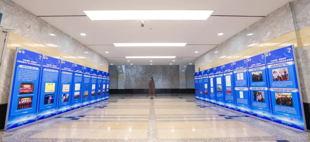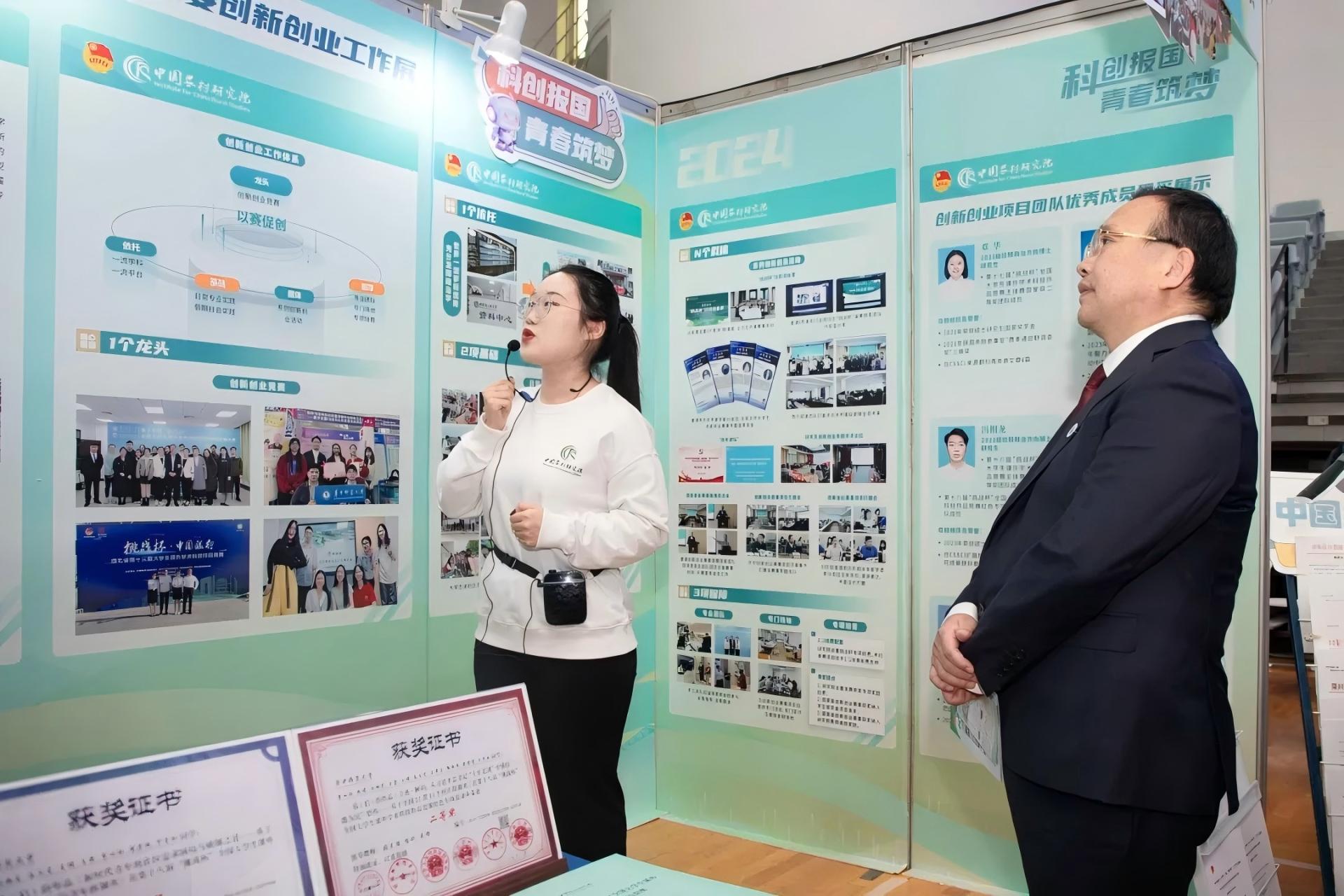 開幕式當天,佑銘體育館全天設置“科創報國·青春筑夢”共青團服務大學生創新創業成果展。展會分設“學校共青團服務大學生創新創業成果展”“學校創新創業競賽優秀項目展”“基層團委創新創業工作展”三個板塊,以項目展板、實物展示、多媒體演示、現場互動等多種形式展開,全方面、多層次、深度化展現我校創新創業成績和經驗
