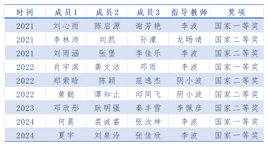 近年來我校在該賽事上獲得的國家級榮譽