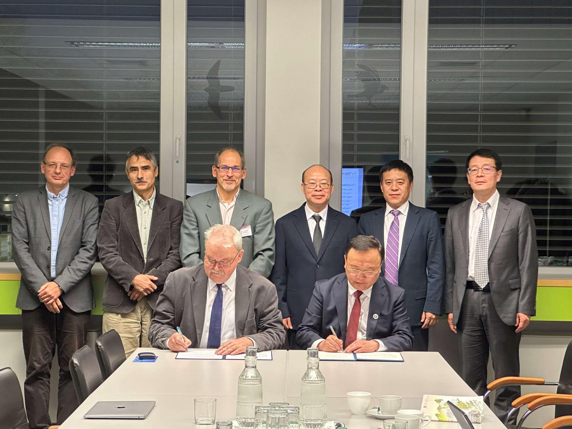 在匈牙利科學(xué)院維格納物理研究中心(Wigner RCP)期間,夏立新與主任彼得·萊瓦伊(Péter Lévai)及相關(guān)研究部門負責(zé)人開展座談。萊瓦伊及與會代表詳細介紹了當(dāng)前研究重點以及未來發(fā)展方向,并誠摯邀請我校相關(guān)研究人員更深層次地參與合作,推動產(chǎn)學(xué)研用,為中匈人文交流貢獻新的力量。會談中,雙方就未來合作達成共識,并簽署了合作諒解備忘錄。訪問期間,夏立新一行還參觀了量子計算實驗室、光學(xué)實驗室、探測器制備室等設(shè)施平臺,加深了對未來新合作領(lǐng)域的認識和了解。