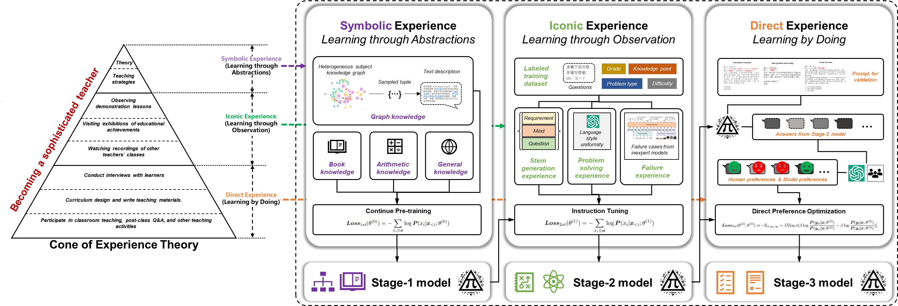 華大在線訊(通訊員 萬(wàn)仟)近日,人工智能教育學(xué)部劉三女牙教授團(tuán)隊(duì)在教育大模型研究方向取得重要進(jìn)展,創(chuàng)新性提出基于經(jīng)典教育學(xué)理論“經(jīng)驗(yàn)之塔”的教育大模型塔式構(gòu)建法,在此基礎(chǔ)上設(shè)計(jì)了多智能體自主驅(qū)動(dòng)的教學(xué)場(chǎng)景數(shù)據(jù)合成框架,為促進(jìn)教育大模型創(chuàng)新發(fā)展提供了一種新穎且有效的技術(shù)途徑。此外,研究團(tuán)隊(duì)成功獲批本年度國(guó)家自然科學(xué)基金重點(diǎn)項(xiàng)目“面向智慧教育的多模態(tài)模型構(gòu)建方法”。