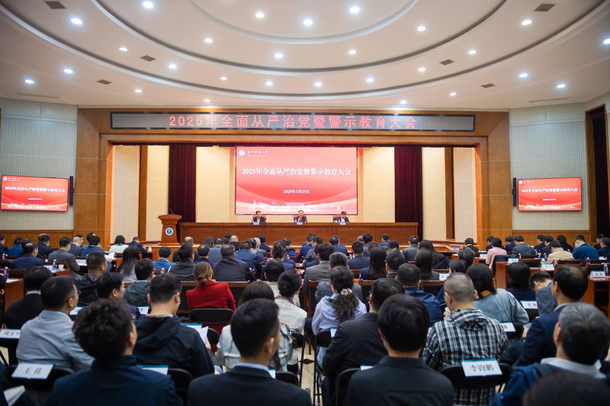 華大在線訊(通訊員 涂敏)3月27日,學校召開2025年全面從嚴治黨暨警示教育大會,總結(jié)學校2024年全面從嚴治黨工作,分析研判形勢任務,部署安排2025年重點工作,深入開展警示教育。校黨委書記夏立新出席會議并講話,校長、黨委副書記彭雙階主持會議,校黨委副書記、紀委書記劉繼文總結(jié)并部署學校紀檢巡察工作。