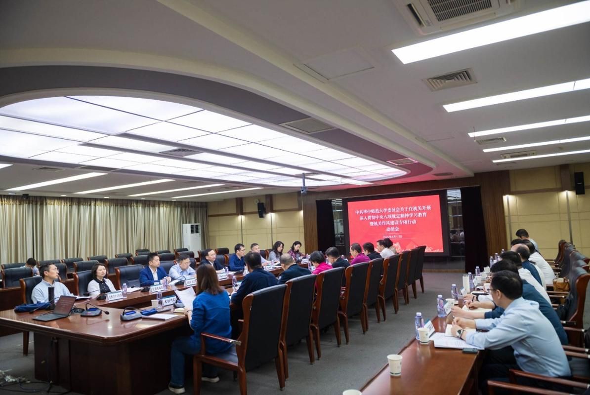 華大在線訊(通訊員 徐麗)4月11日,機關(guān)黨委深入貫徹中央八項規(guī)定精神學(xué)習(xí)教育暨機關(guān)作風(fēng)建設(shè)專項行動動員會在逸夫國際會議中心召開。校黨委書記夏立新、機關(guān)黨委各黨支部書記及相關(guān)單位負(fù)責(zé)人參會,會議由校黨委副書記陳迪明主持。