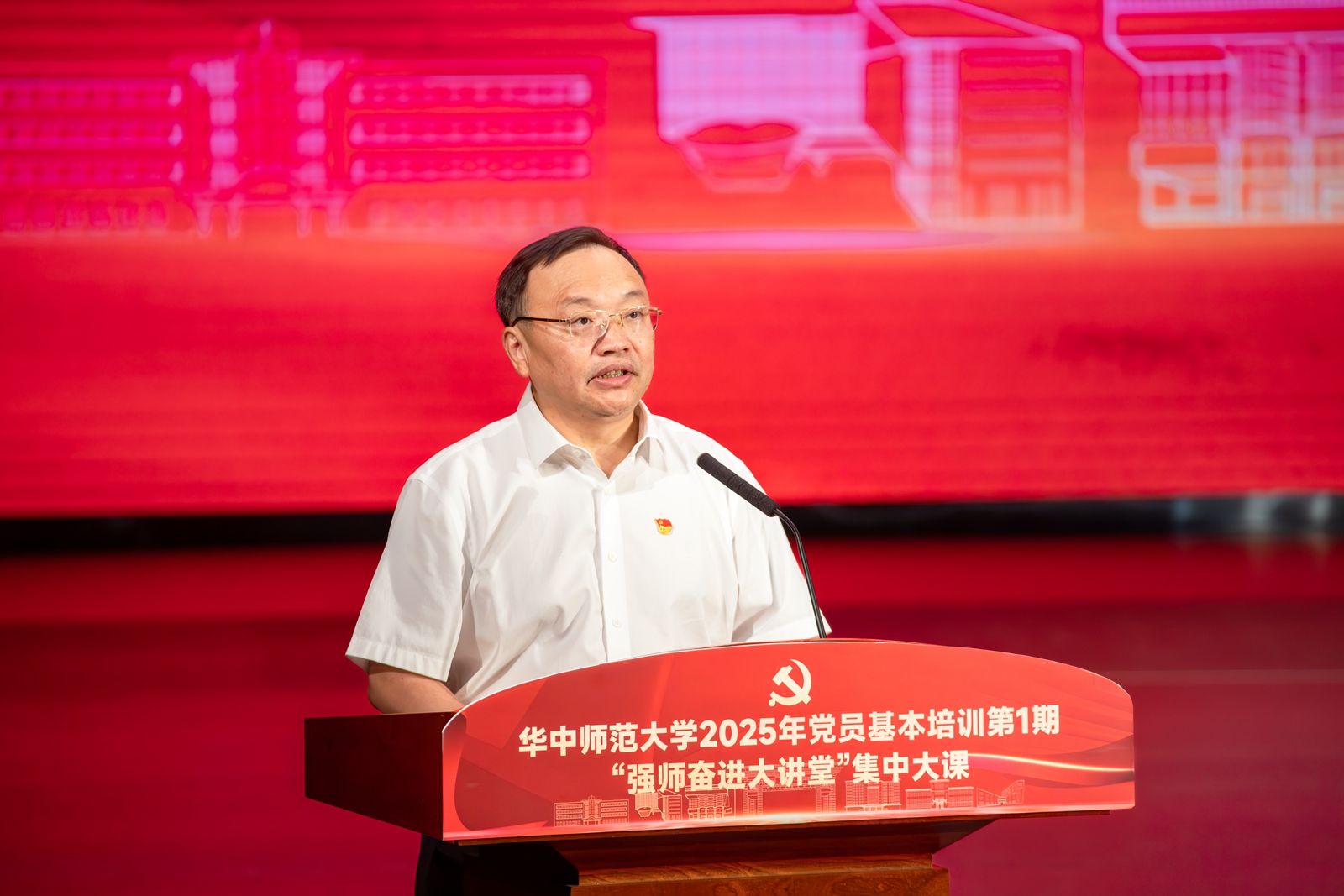 華大在線訊(通訊員 張琳)為深入學(xué)習(xí)貫徹習(xí)近平新時(shí)代中國特色社會(huì)主義思想,推動(dòng)全校師生黨員進(jìn)一步強(qiáng)化黨的創(chuàng)新理論武裝,提升黨性修養(yǎng),增強(qiáng)能力本領(lǐng),6月20日,學(xué)校2025年黨員基本培訓(xùn)第1期“強(qiáng)師奮進(jìn)大講堂”開講,全校近萬名師生黨員在主會(huì)場(chǎng)和84個(gè)分會(huì)場(chǎng)同步學(xué)習(xí)教育部黨組書記、部長懷進(jìn)鵬同志主講專題課程。武漢紡織大學(xué)原黨委書記田輝玉同志,教育部直屬高校黨建工作聯(lián)絡(luò)員、中南財(cái)經(jīng)政法大學(xué)原黨委副書記齊文遠(yuǎn)同志等到會(huì)指導(dǎo)。校黨委書記夏立新主持會(huì)議,全體校領(lǐng)導(dǎo)參加學(xué)習(xí)。