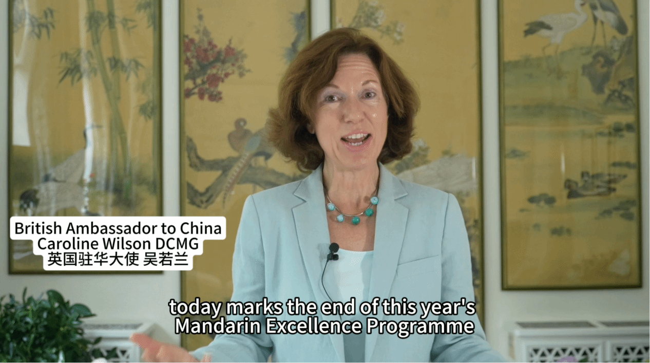 英國駐華大使吳若蘭通過視頻致辭。她強調,中國是一個具有全球影響力的國家,此次沉浸式體驗對英國學生而言意義深遠。她引用了成語“初生牛犢不怕虎”和“知行合一”,期望學生們能夠勇敢無畏,通過實際行動獲取真知,希望學生們返回英國后,將在中國的經歷轉化為持續學習中文的動力。