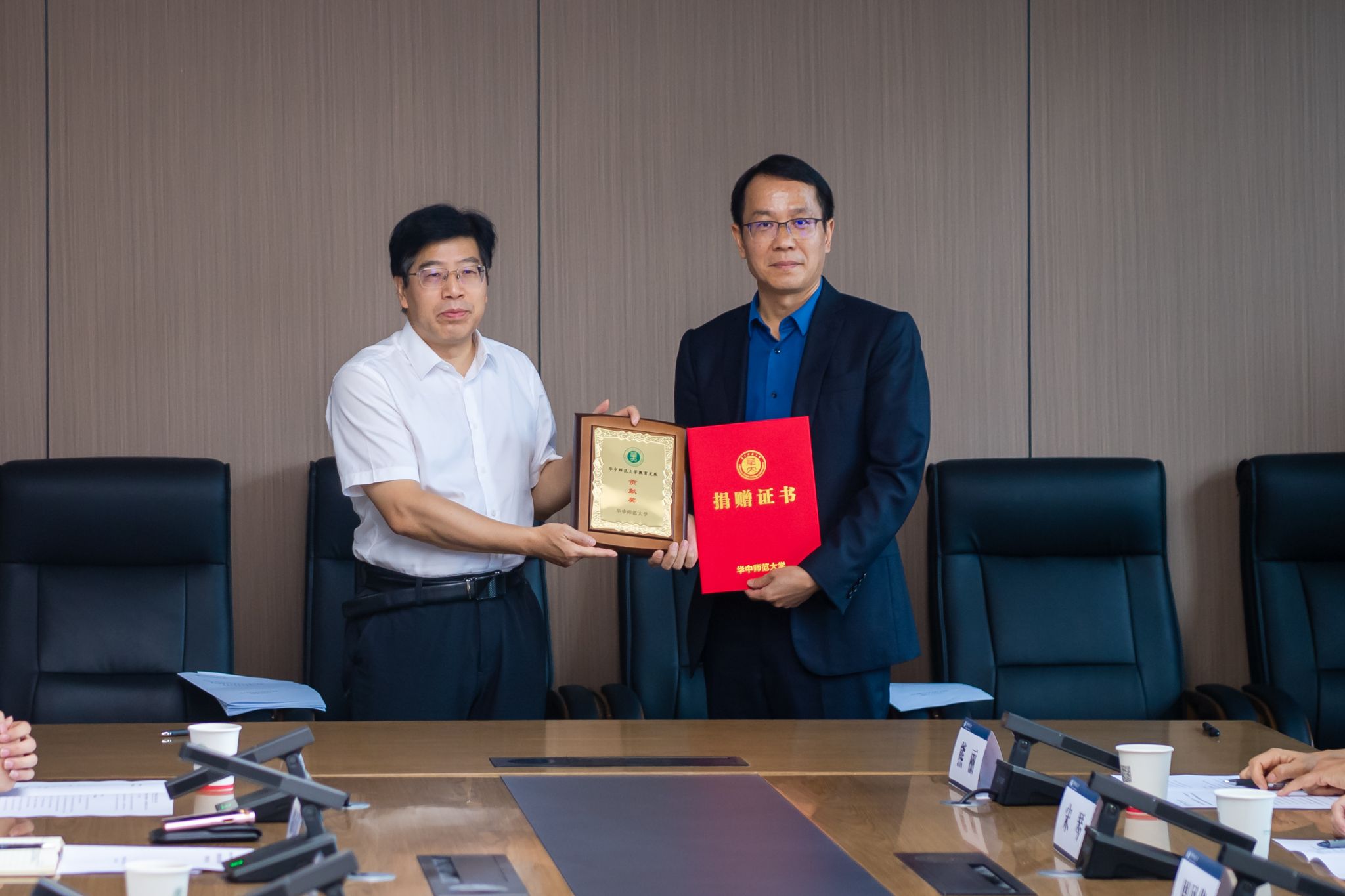 華進聯合專利商標代理有限公司與我校簽署捐贈協議,捐資50萬元設立“華中師范大學邏輯學教育發展基金”,用于支持我校邏輯學教育發展。彭雙階代表學校向胡杰頒發捐贈證書、紀念獎牌。