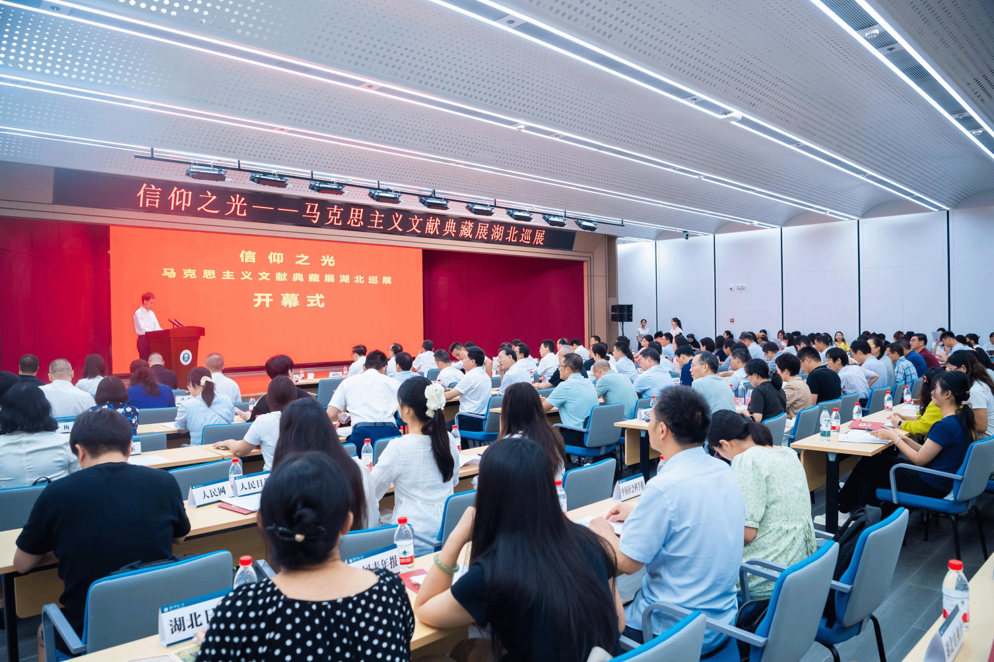 華大在線訊(記者 華軒)9月12日,“信仰之光——馬克思主義文獻(xiàn)典藏展”湖北巡展在校開展。中央黨史和文獻(xiàn)研究院學(xué)術(shù)和編審委員會(huì)主任王均偉,湖北省政協(xié)黨組成員、副主席王興於,中央黨史和文獻(xiàn)研究院信息資料館館長(zhǎng)許先春,中央文獻(xiàn)出版社社長(zhǎng)郗衛(wèi)東,湖北省政協(xié)常委、文化文史和學(xué)習(xí)委員會(huì)主任王斌武,湖北省委宣傳部副部長(zhǎng)趙理富,校黨委書記夏立新、校長(zhǎng)彭雙階等出席。中央黨史和文獻(xiàn)研究院、湖北省直機(jī)關(guān)等單位有關(guān)負(fù)責(zé)同志,以及在漢23所高校馬克思主義學(xué)院師生代表和媒體等參加活動(dòng)。開幕式由湖北省委黨史研究室主任項(xiàng)水倫主持。