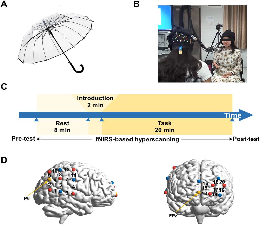 基于長期以來在創造力與認知神經方面的工作基礎,趙慶柏教授課題組采用基于功能性近紅外光譜成像儀(fNIRS)的超掃描(hyperscanning)技術,從多腦功能整合的視角探究自然交流情境下團體創造任務的獨特神經模式。通過衡量創造性任務與非創造性任務(一般任務)的人際神經同步(interpersonal neural synchronization, INS)差異來考察團體創造中小組成員的腦間神經活動特點。